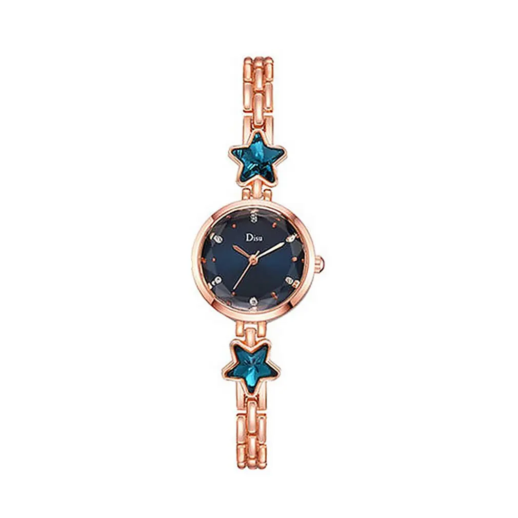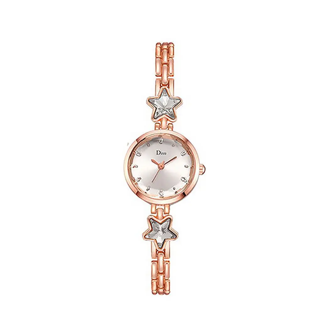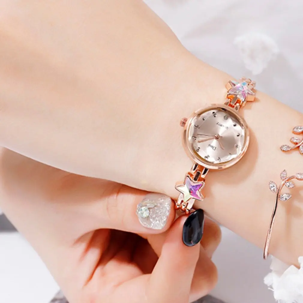 Изысканный звезда с украшением в виде кристаллов браслет Кварцевые часы Женские студенческие часы-браслет