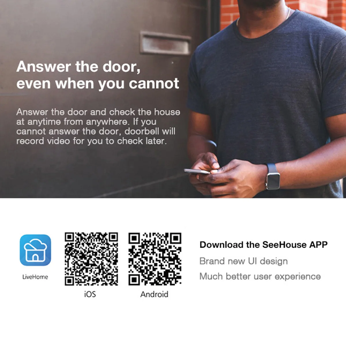 ★Управление несколькими пользователями и большая Память: Поддержка множества устройств (телефонов) для одновременного мониторинга. Вы можете поделиться qr-кодом звонка с семьей и поддерживать тесную связь с семьей (когда они возвращаются домой и кто приходит в гости). Поддержка облачного хранилища.