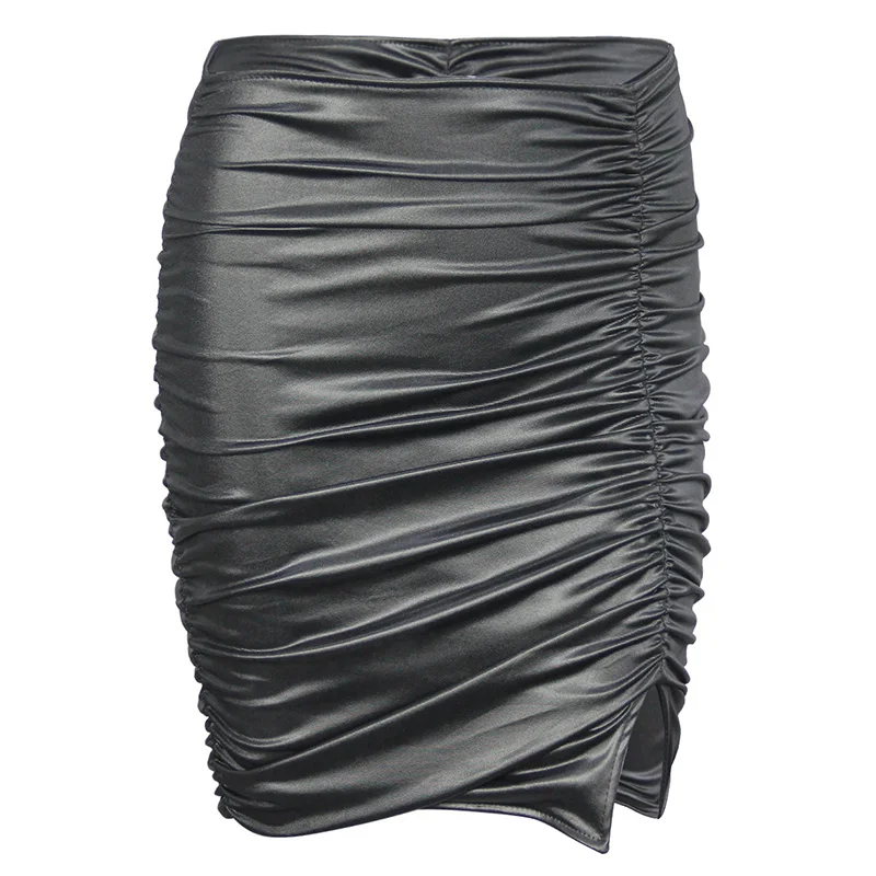 Вы пришли убить в сплит-юбке черный ПУ! Эта супер Сексуальная мини-юбка дает идеальное количество плохих девушек. Носите его в течение дня с футболкой с укороченным ремешком, ботильонами и эффектными солнцезащитными очками.