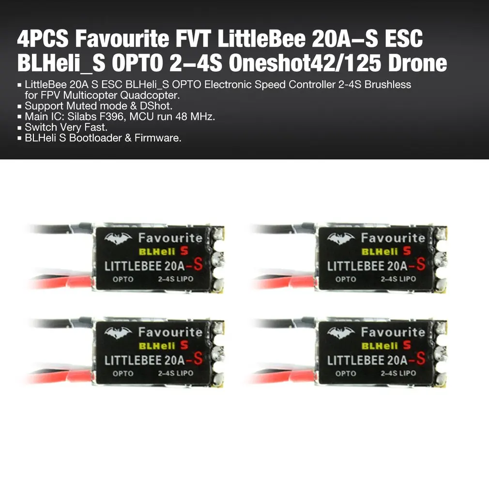 4 шт. любимый FVT LittleBee 30A-S/20A-SESC BLHeli_S OPTO 2-6S/2-4SДрон Oneshot42/125