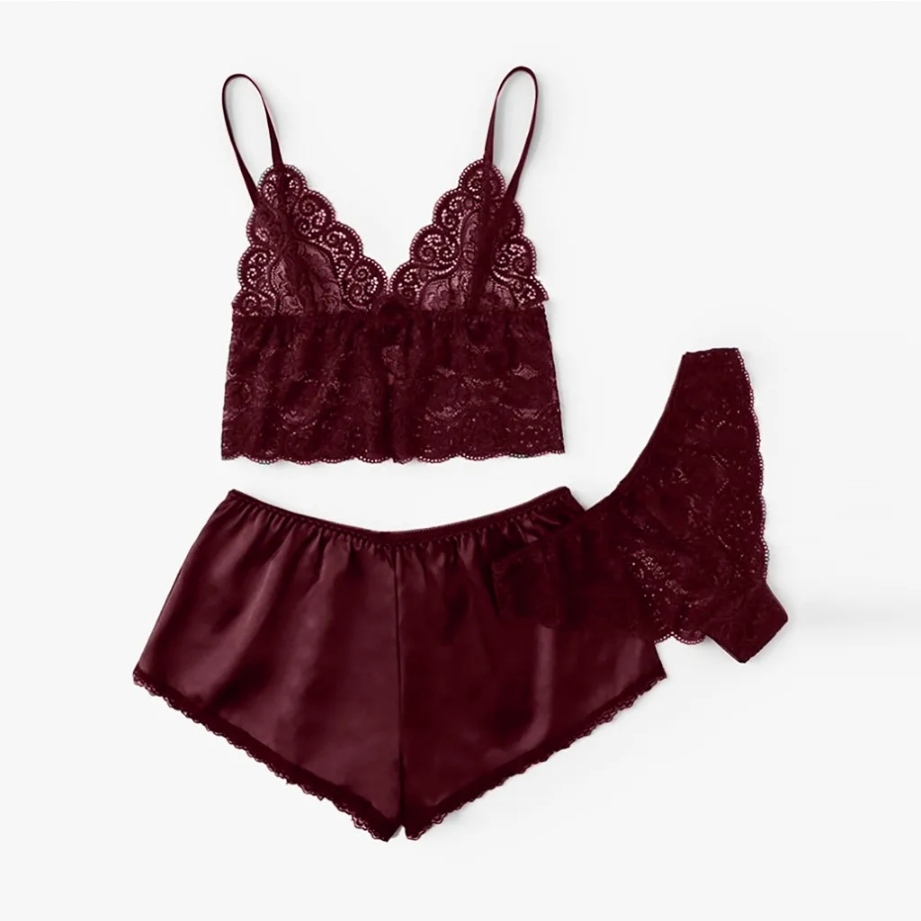 Шелковые пижамы, сексуальное атласное нижнее белье, кружевные шорты, набор, женское нижнее белье, одежда для сна, S-XL