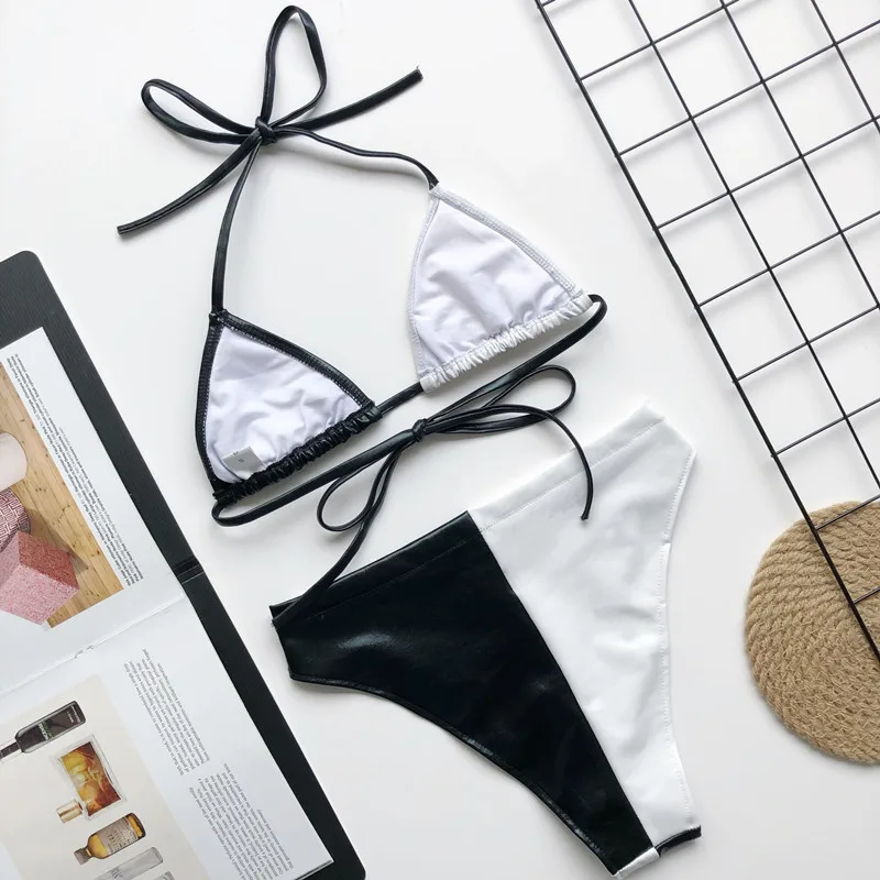 Сексуальный Яркий кожаный комплект бикини, Лоскутная Женская одежда для плавания, купальный костюм с пуш-ап, женский купальный костюм, пляжная одежда, купальник для девочек, лето 2020