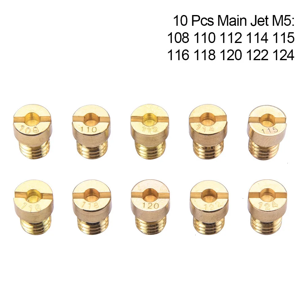 10 шт. M5 резьба мотоцикла основной струйный комплект для Keihin OKO PE PWK карбюратор 108 110 112 114 115 116 118 120 122 124 и т. Д.