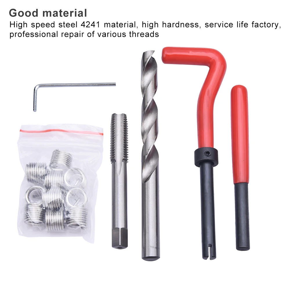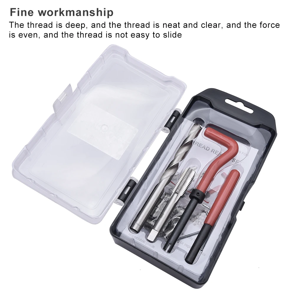 -Этот набор для ремонта резьбы M8 содержит инструмент для установки, резьбовой кран, сверло, вставки для проволочной резьбы.