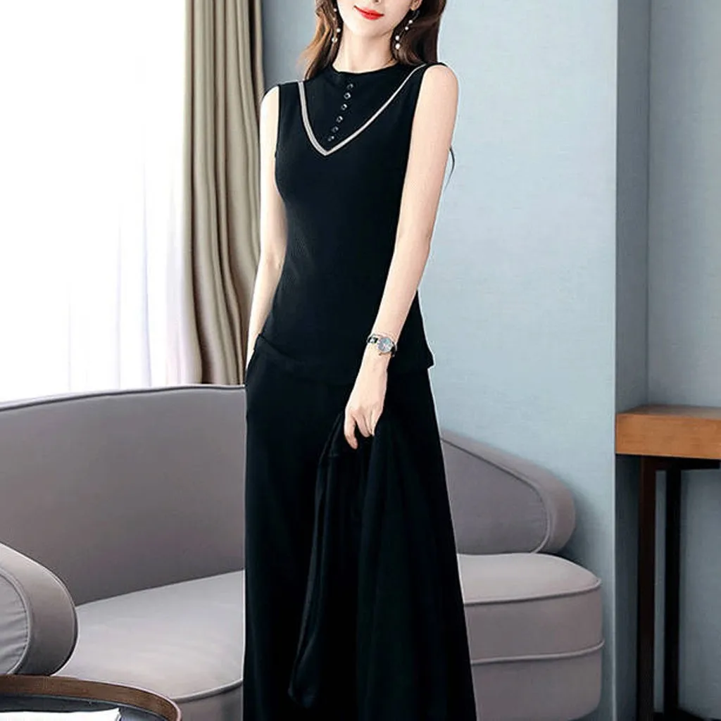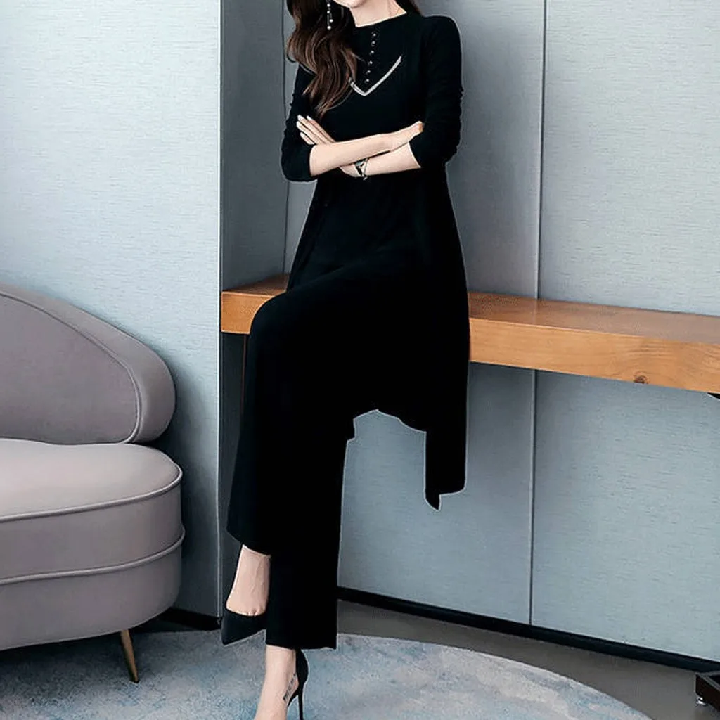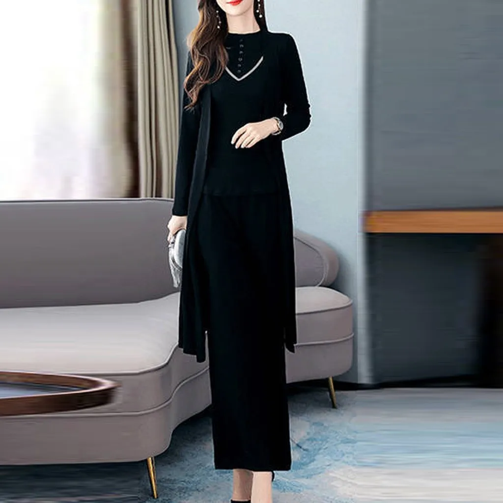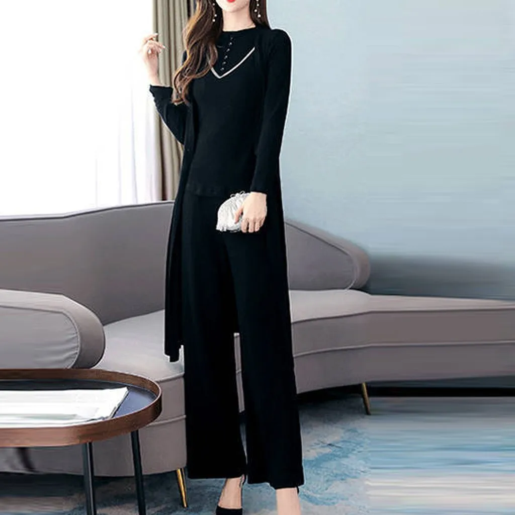 Women Cardigan Vest 3 Piece Set Banquet Long Pants Casual Outfit Elegant Lady