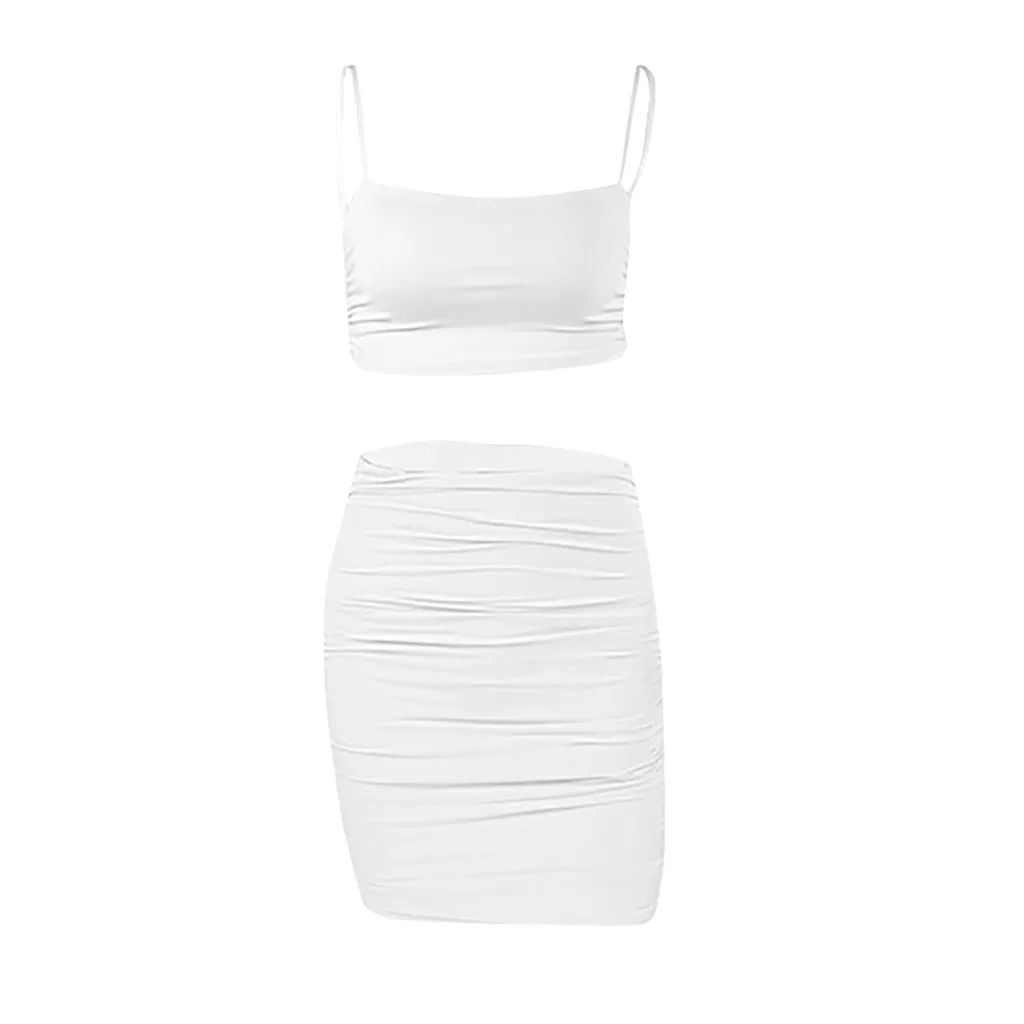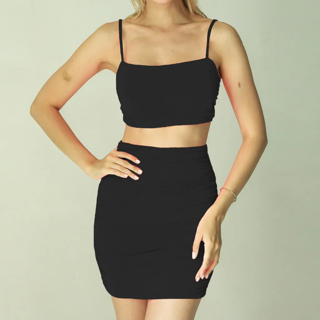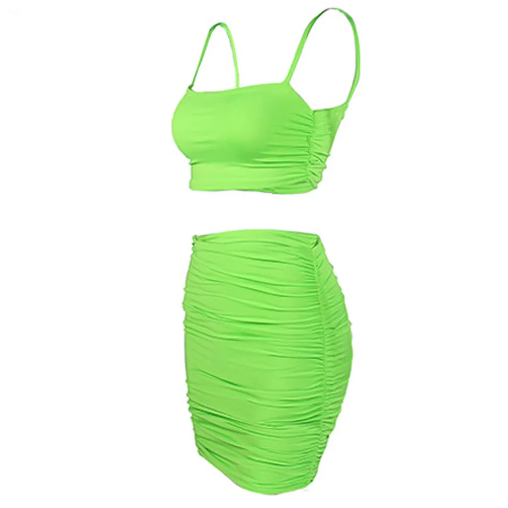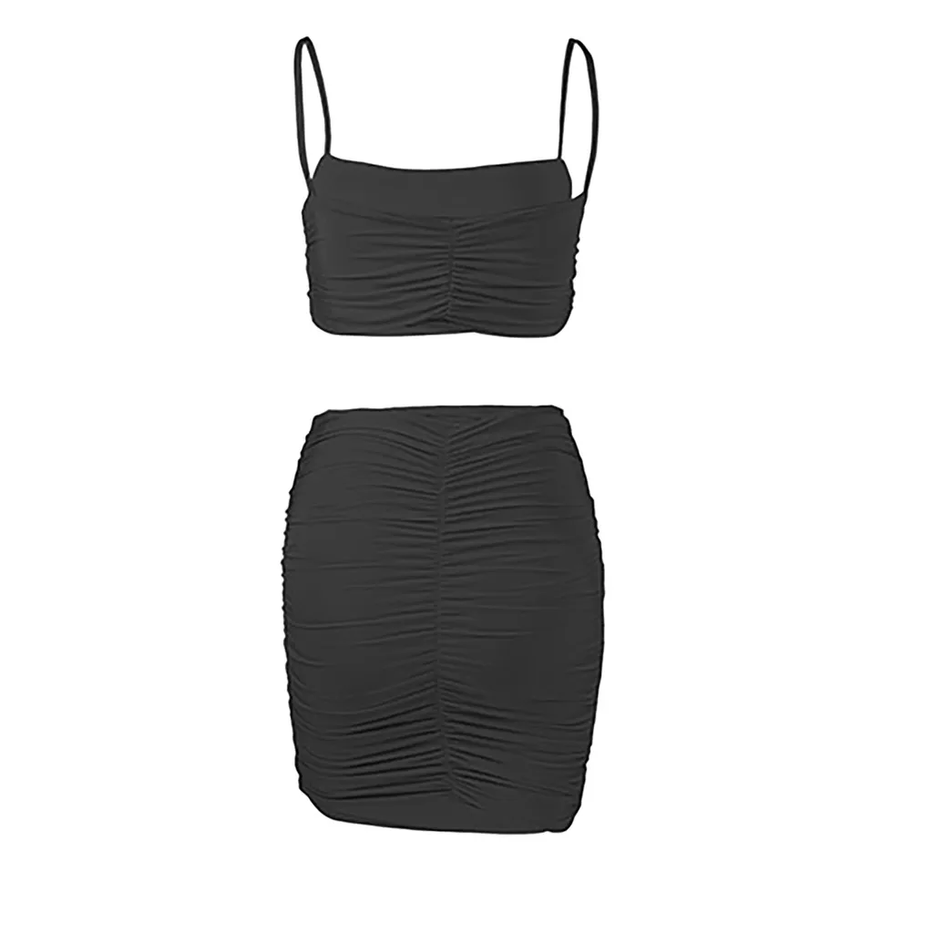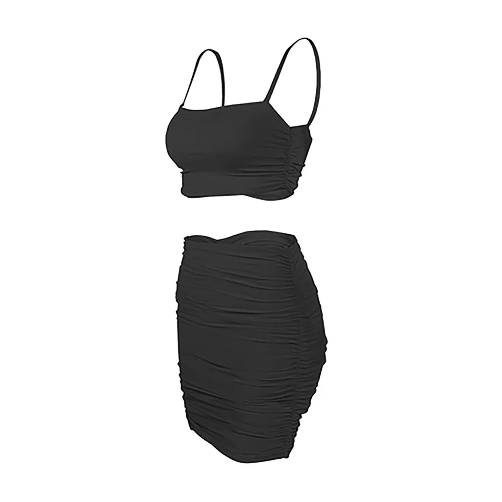 Женский модный однотонный костюм на бретелях без рукавов, облегающая юбка со складками