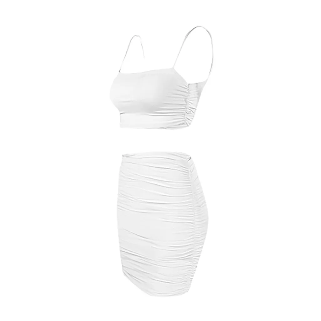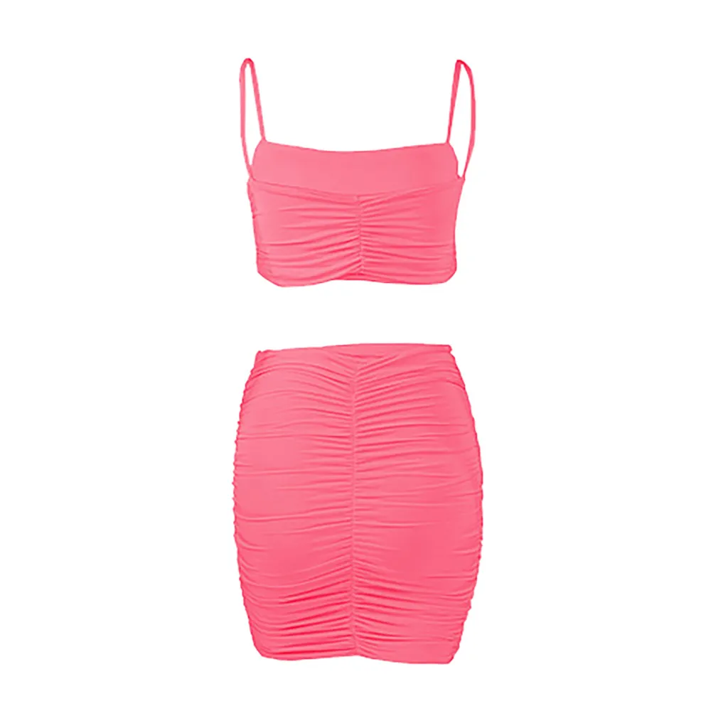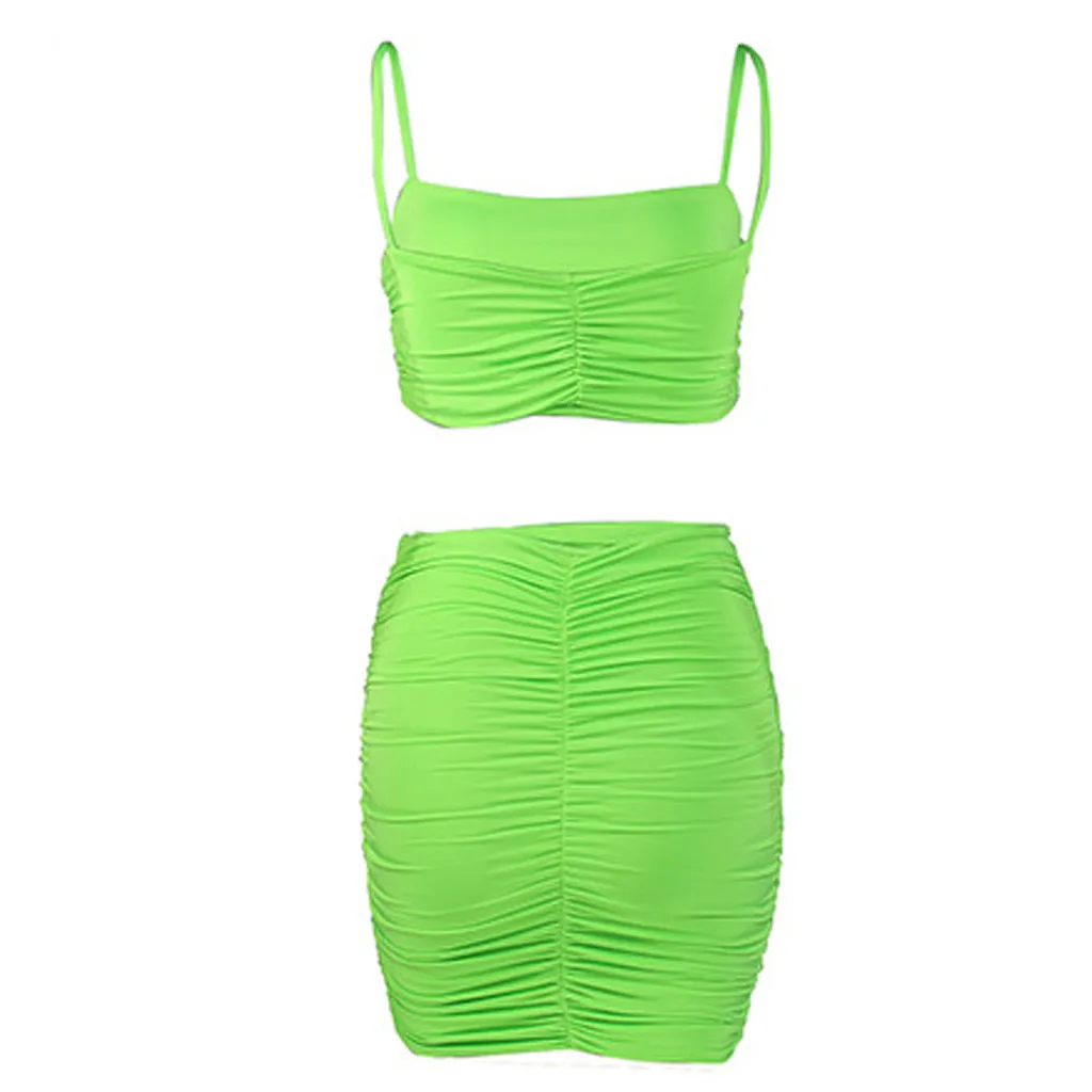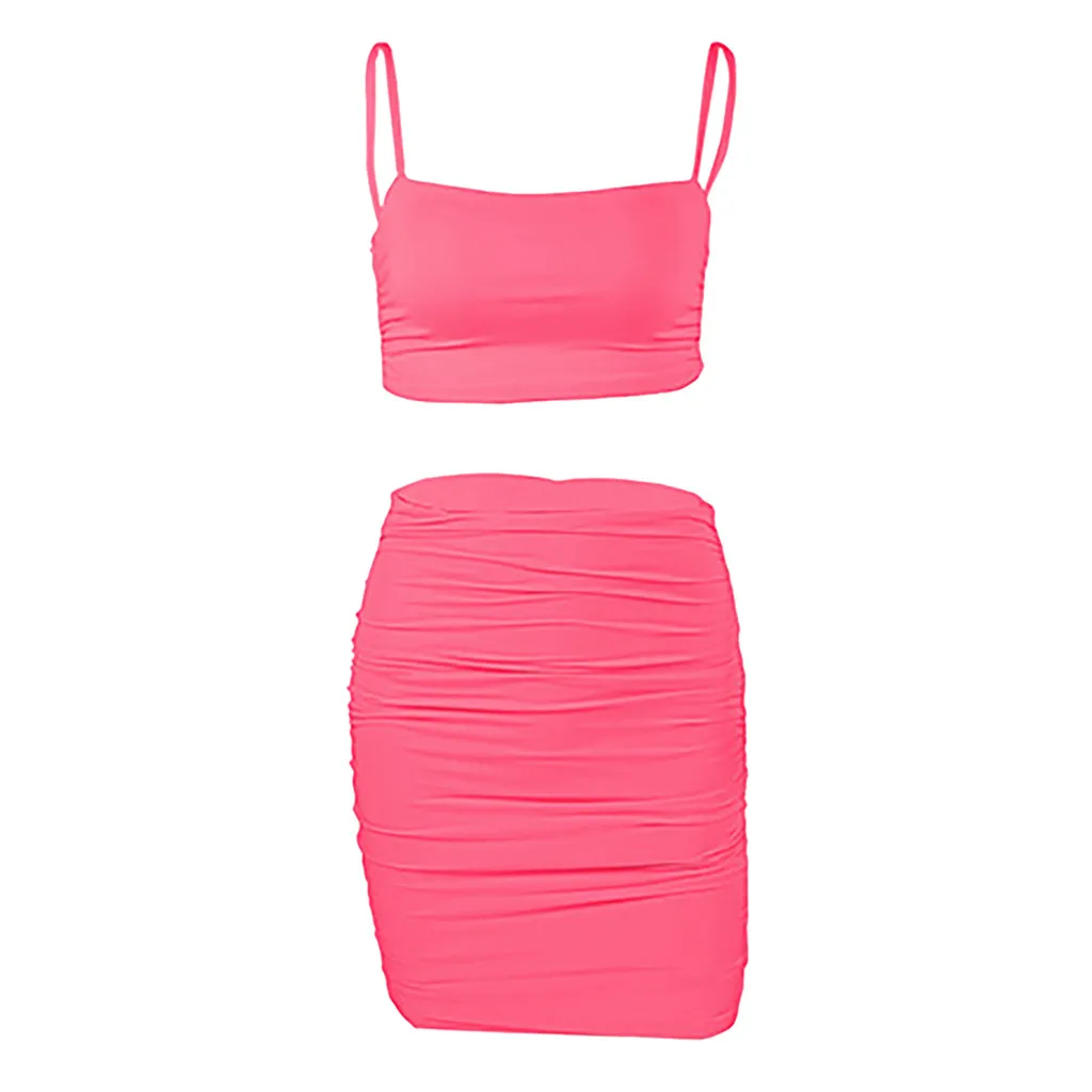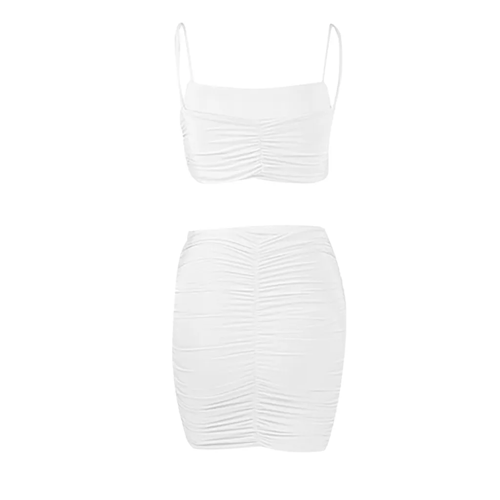 Женский модный однотонный костюм на бретелях без рукавов, облегающая юбка со складками