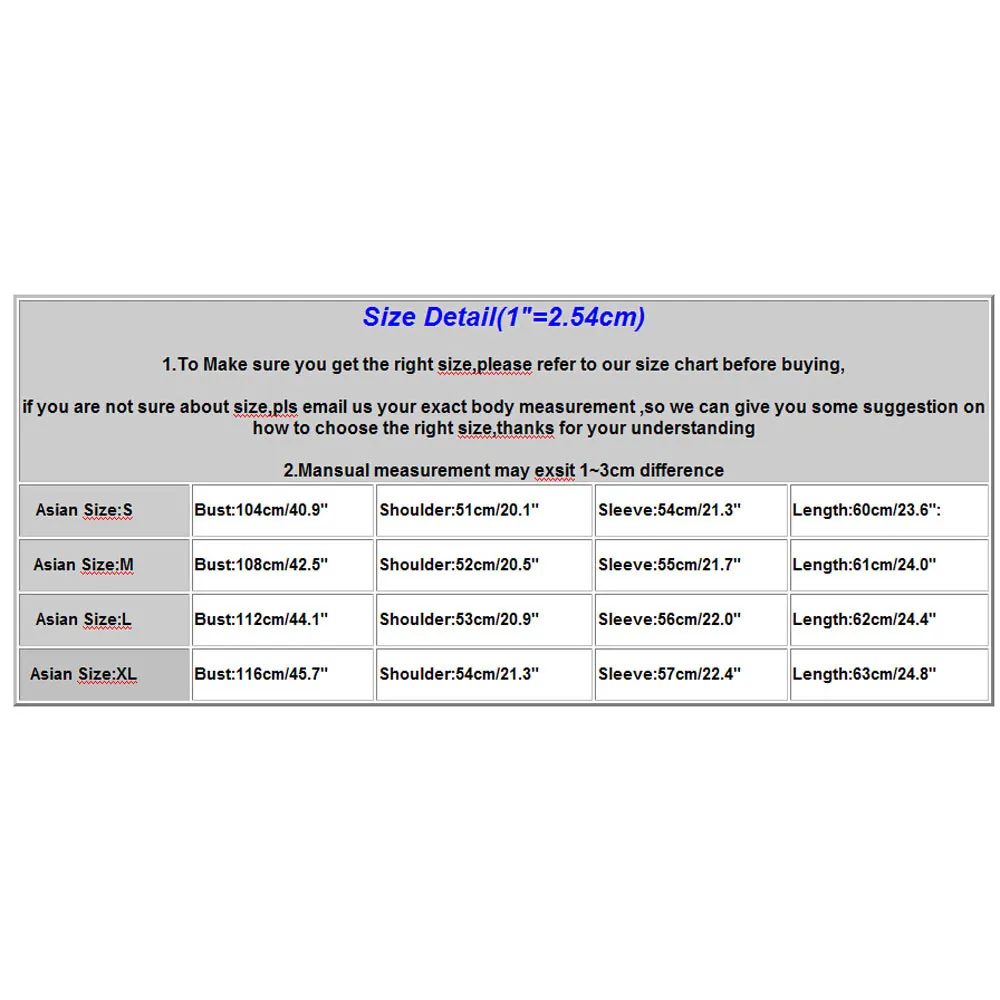 Азиатский Размеры: S Обхват груди:104См/40,9" Ширина плеч:51 см/20,1" Длина рукава:54 см/21,3" Длина:60 см/23,6": Азиатский Размеры: М Обхват груди:108 см/42,5" Ширина плеч:52См/20,5" Длина рукава:55 см/21,7" Длина:61 см/24,0" Азиатский Размеры: L Обхват груди:112 см/44,1" Ширина плеч:53См/20,9" Длина рукава:56 см/22,0" Длина:62 см/24,4" Азиатский Размеры: XL Обхват груди:116 см/45,7" Ширина плеч:54 см/21,3" Длина рукава:57 см/22,4" Длина:63 см/24,8"Последние несколько лет часто пользуюсь услугами этой компании, частенько делаю заказы, для дома, для детей и для себя любимой, и... Читать отзыв полностью...