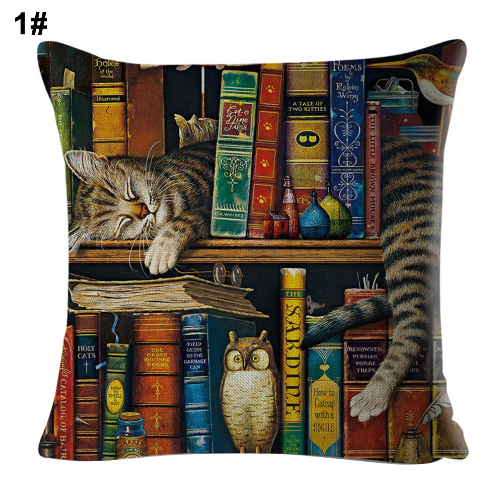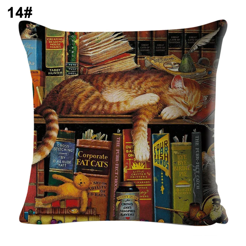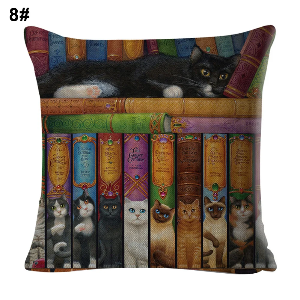 45x45 см Симпатичный книги кошки Подушка Чехол для подушки диван-кровать Кафе Декор