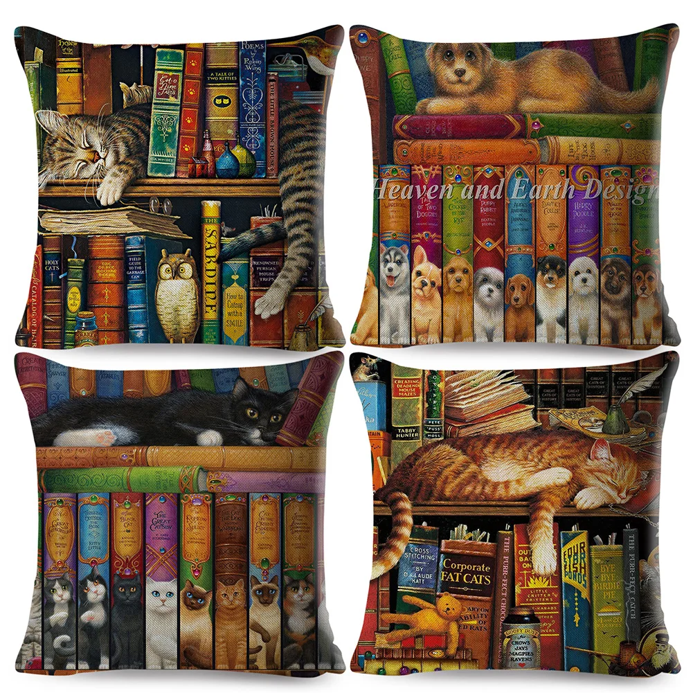 Особенности: книги с изображением кошек, съемный, дышащий, домашний декор