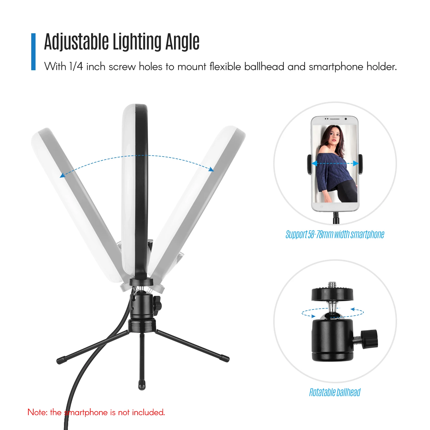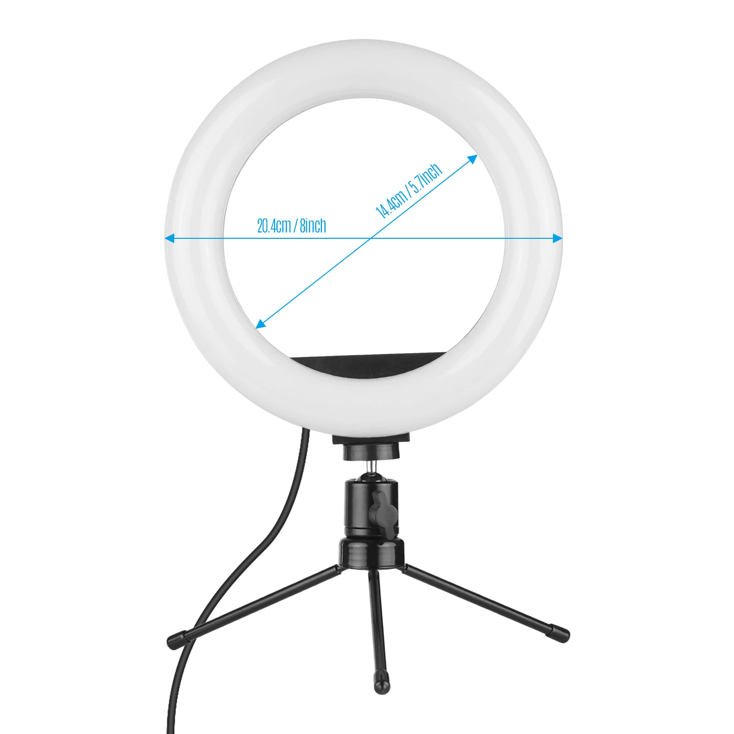 8 дюймовый светодиодный кольцевой светильник оборудована одним шариковая головка для легкой регулировки светильник ing угол и подставка для сотового телефона, который может удерживать смартфон магнитных материалов с шириной от 5,8 см до 7,8 см.