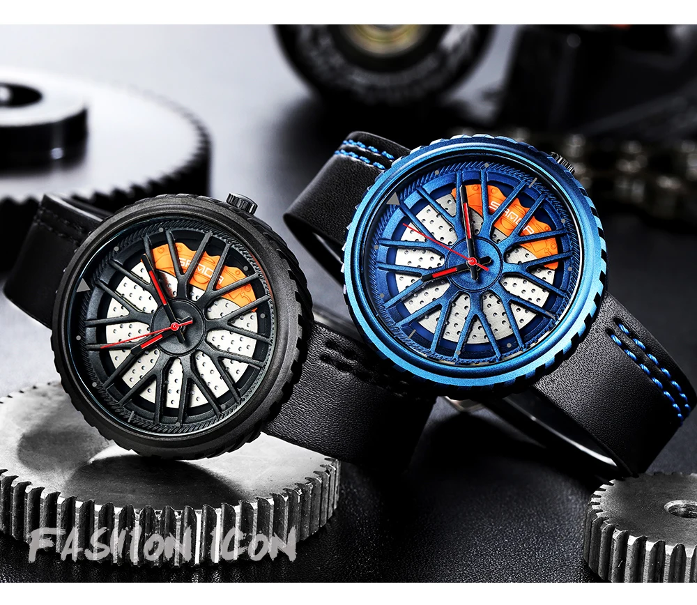 Relogio masculino Лидер продаж модные спортивные колеса автомобиля Шины циферблат Мужские часы Топ Бренд роскошные кожаные часы полосы кварцевые наручные часы