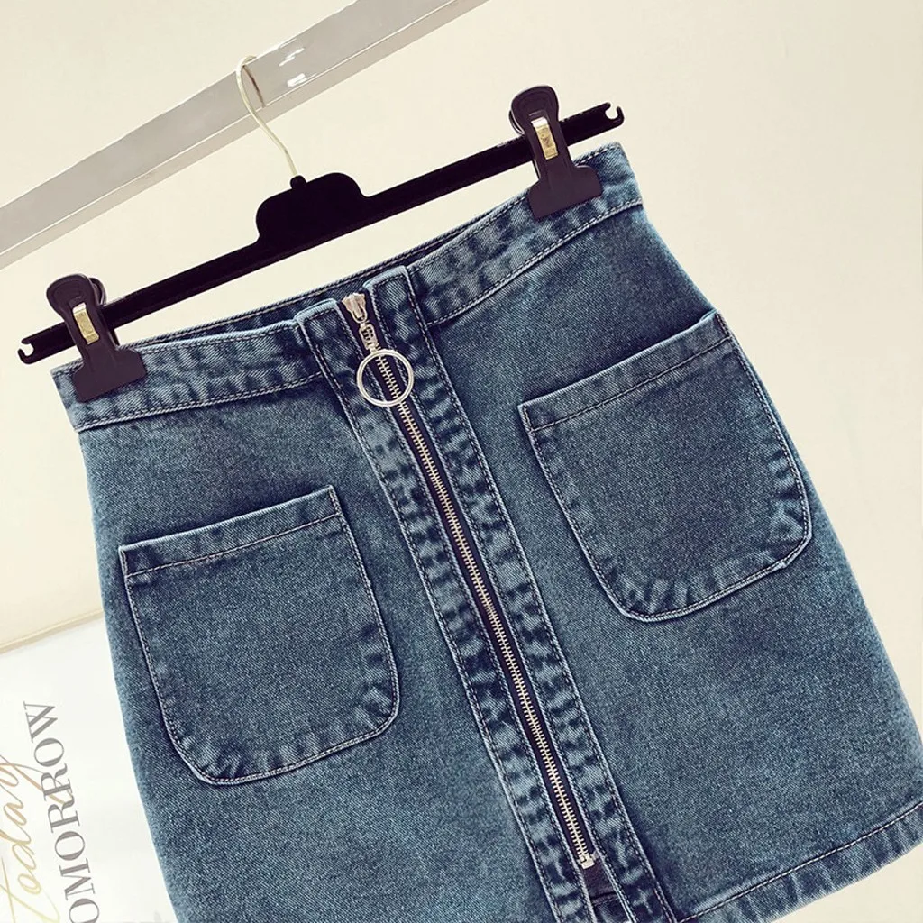 Новая Корейская короткая джинсовая юбка на молнии с высокой талией и карманами для студентов