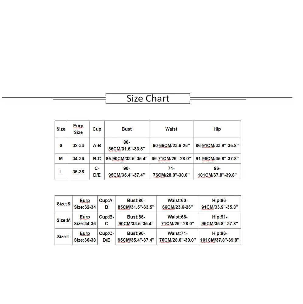 Примечание: Пожалуйста, сравните детали размеров с вашими перед покупкой! Используйте аналогичную одежду, чтобы сравнить с размеромРазмеры Eurp Размеры Чашка Обхват груди Обхват талии Обхват бедер S 32-34 A-B 80-85 см/31,5 "-33,5" 60-66 см/23,6-26" 86-91 см/33,9 "-35,8" М Большие размеры 34-36 B-C 85-90 см/33,5 "35,4" 66-71 см/26 "-28,0" 91-96 см/35,8 "-37,8" L 36-38 C-D/E 90-95 см/35,4 "-37,4" 71-76 см/28,0 "-30,0" 96-101 см/37,8 "-39,8"