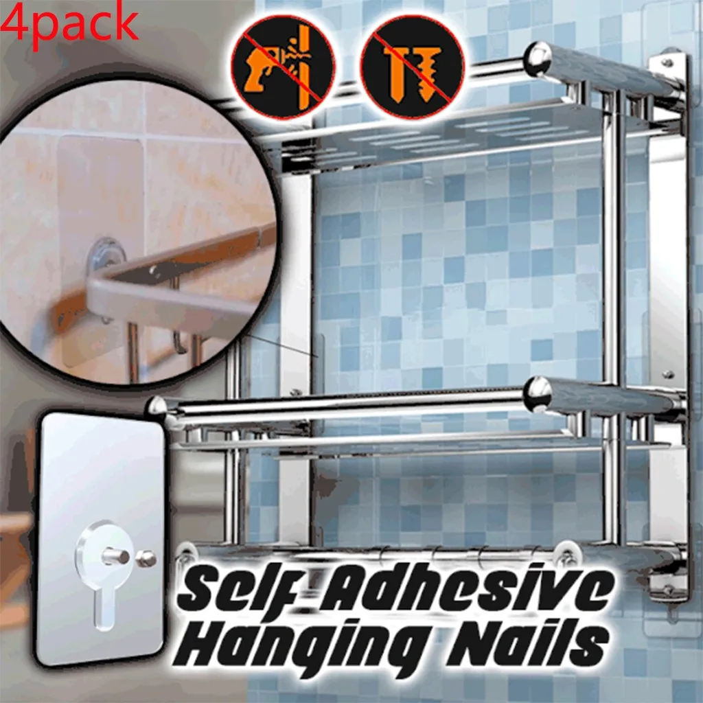 4 шт., крепкий настенный крючок без гвоздей, винтовой клей, прозрачный настенный крючок, Не оставляющий следов, без сверления, для ванной, кухонные крючки
