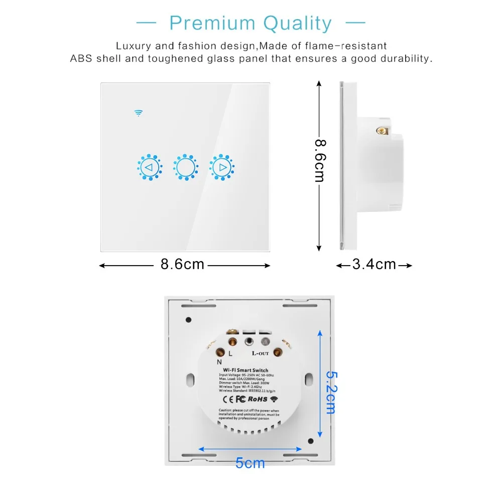 Тип переключателя: сенсорный/приложение/Голосовое управление/затемнение