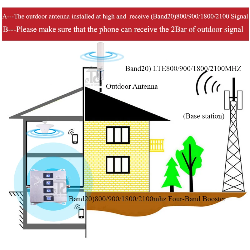 1. Перед оформлением заказа убедитесь, что частота сигнала вашего мобильного телефона (если вы не знаете, пожалуйста, позвоните оператору телефона или свяжитесь с нами). Например: Если частота ваших телефонных карт LTE2600MHZ (полоса 1), вам нужно купить усилитель сигнала 2600mhz 2. Пожалуйста, убедитесь, что на улице или на крыше дома есть хороший сигнал. Сигнал не менее 2 бар