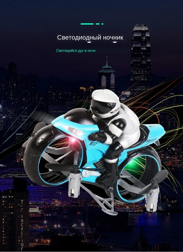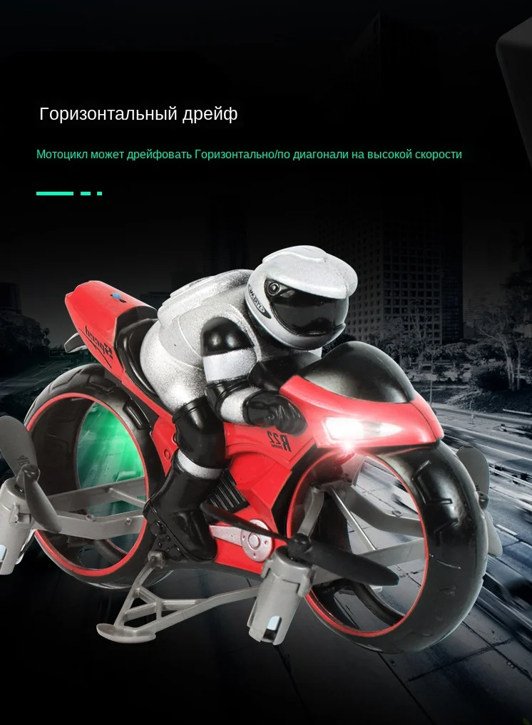 Rc Мотоцикл 2in1 по суше и по воздуху двойной режим Перезаряжаемые трюк флип мотоцикл игрушка с светодиодный свет
