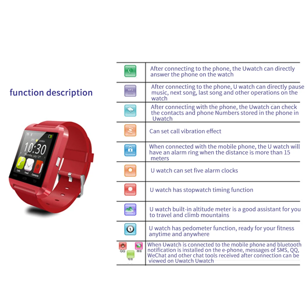 U8 Bluetooth часы чип MTK высота спортивные шаги вызов Смарт часы SMS Синхронизация USB Водонепроницаемый для Android/IOS Телефон
