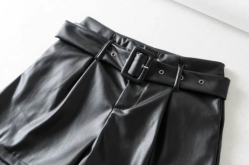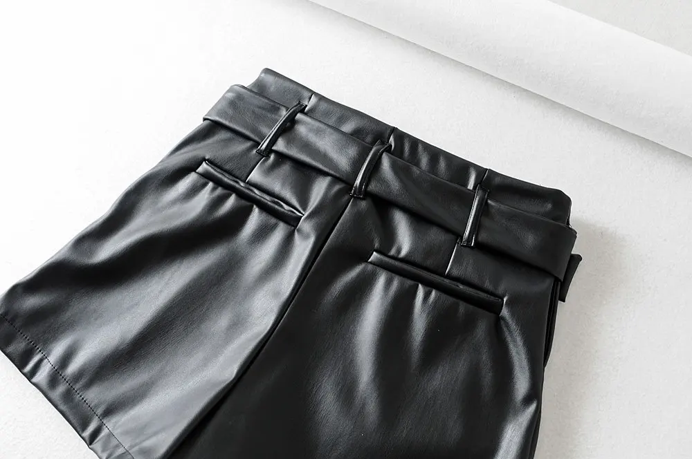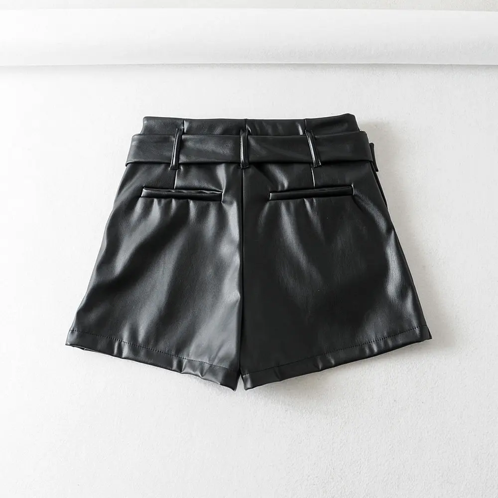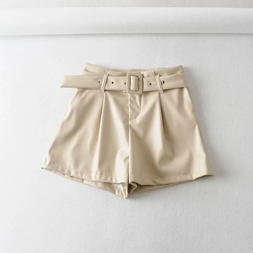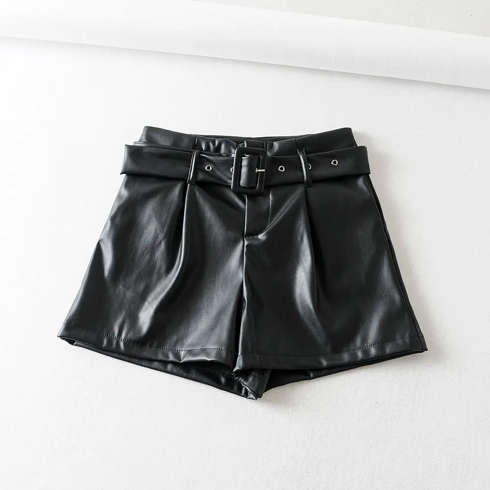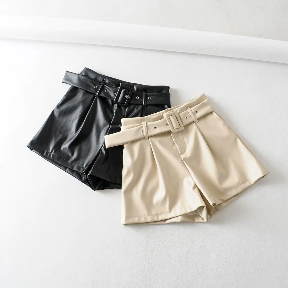 Стильные женские шорты из искусственной кожи черного и бежевого цвета, женские шорты из искусственной кожи с высокой талией, свободные шорты с ремнем, офисные женские шорты zora, зимние шорты 2020