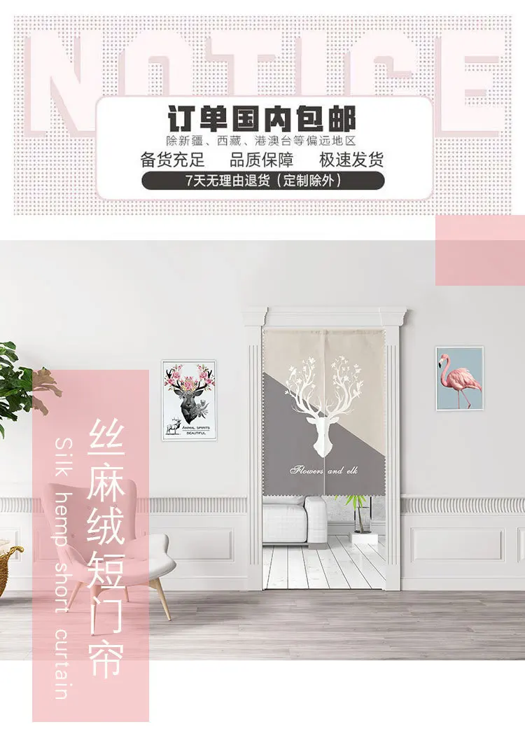 High-definition digital printing, reactive printing and dyeing, PH value of 7.3, non-formaldehyde, environmental safety; Natural cotton linen fabric, high-definition digital printing, washing does not fade; Tips: Fabric background is natural linen white,not pure white. Product Parameters: Size:65x90cm/70x120cm/75x150cm/80x90cm/80x120cm/80x150cm/85x120cm/85x90cm/ 85x150cm/Customize Material: Thick Cotton Linen Blended Products Printing: Mats for single-sided printing Weight: 550g/510g Pakage Inclued: 1pc Door Curtain