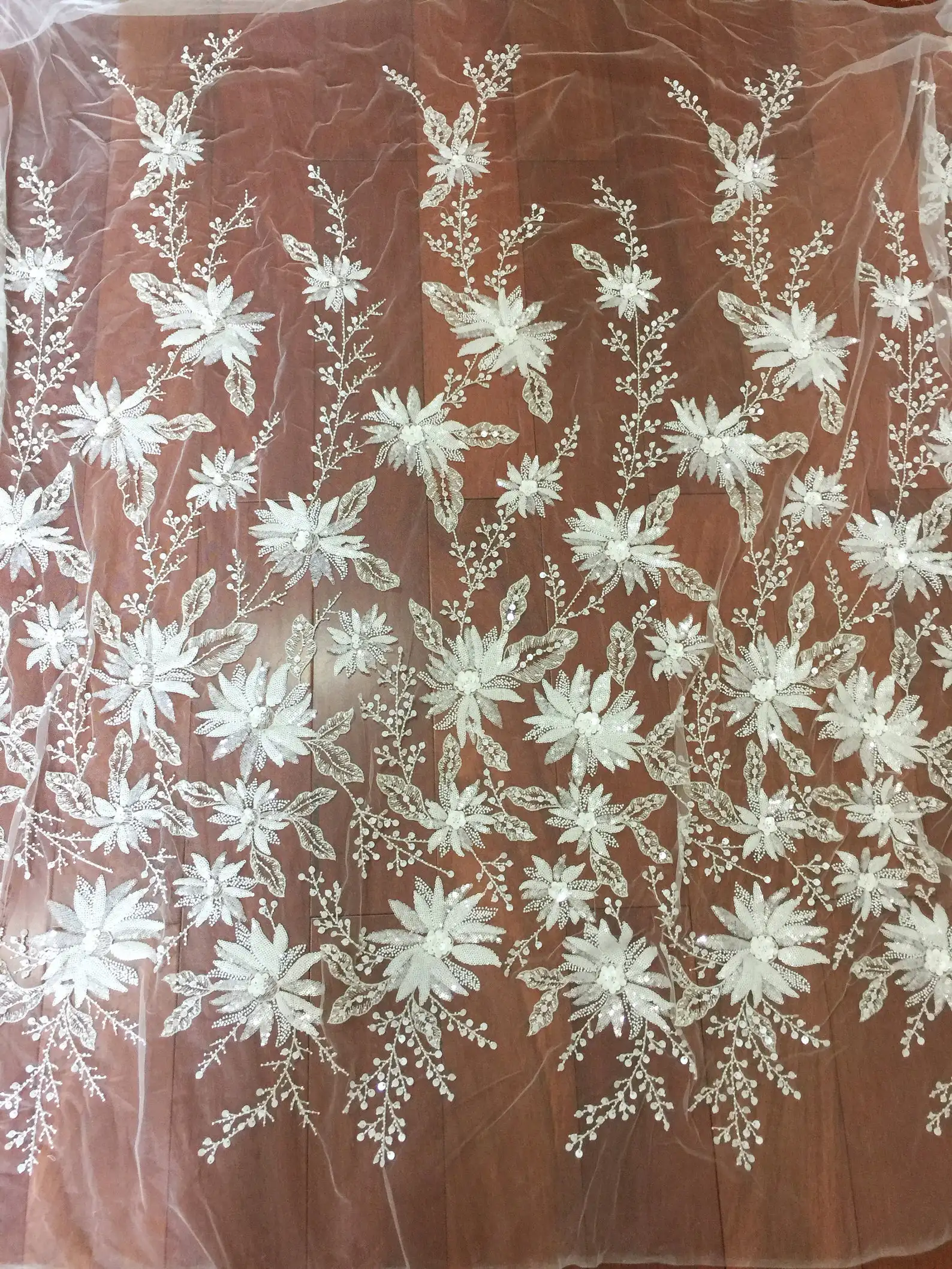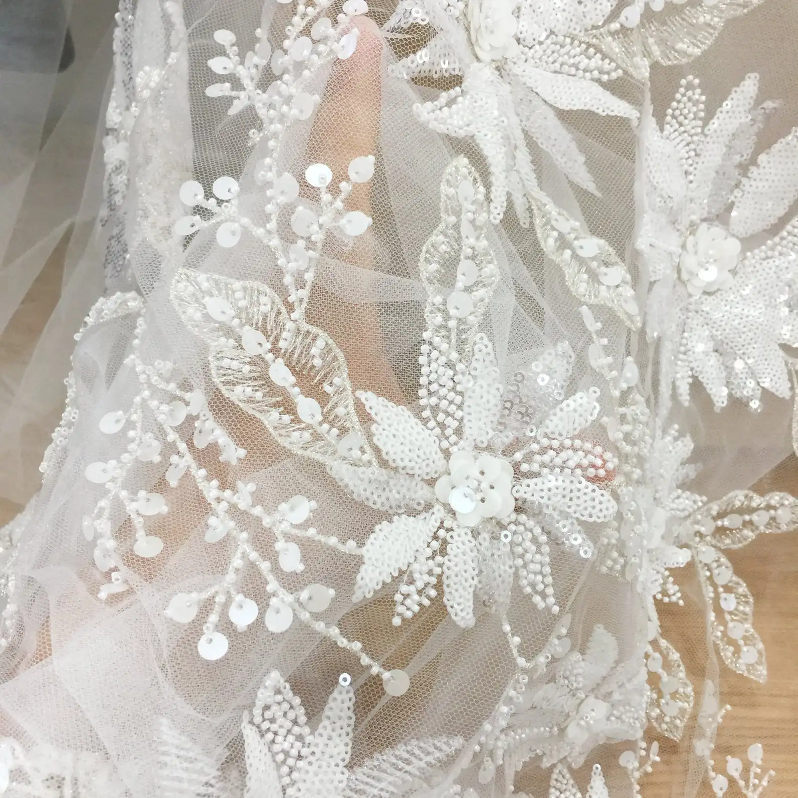 Роскошная Высококачественная кружевная ткань с бисером и объемным кружевом белого цвета