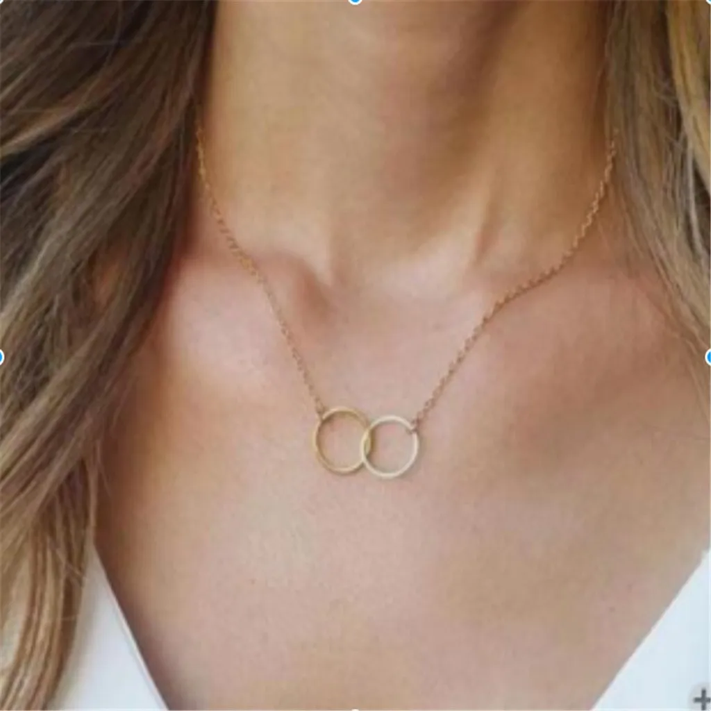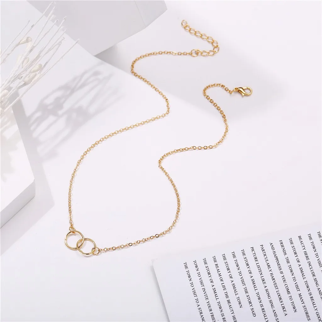Золотое двойное кольцо ожерелье креативный Ретро Простой металлический сплав ключица цепь