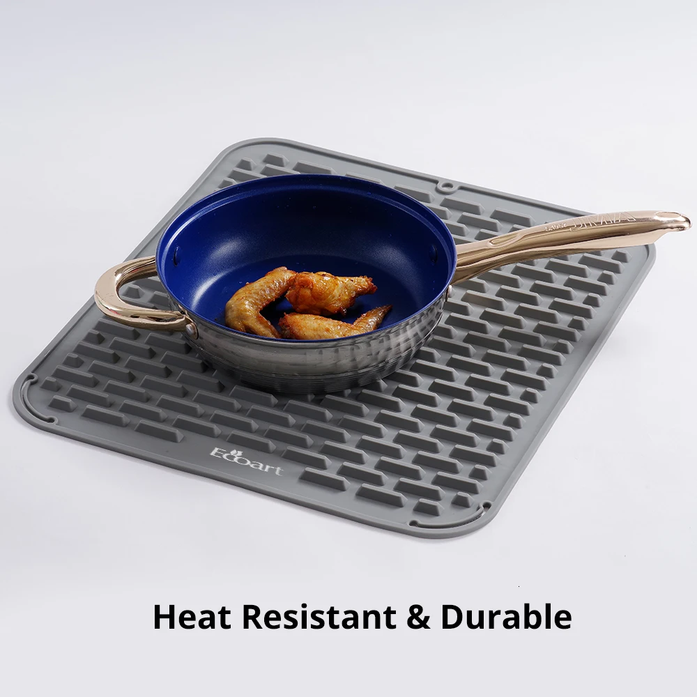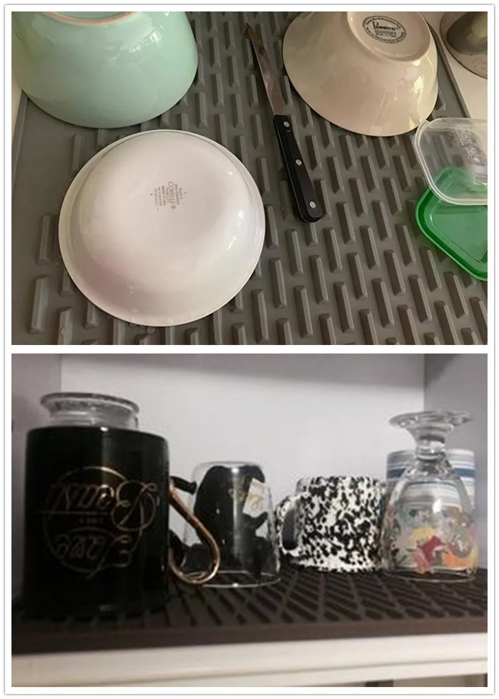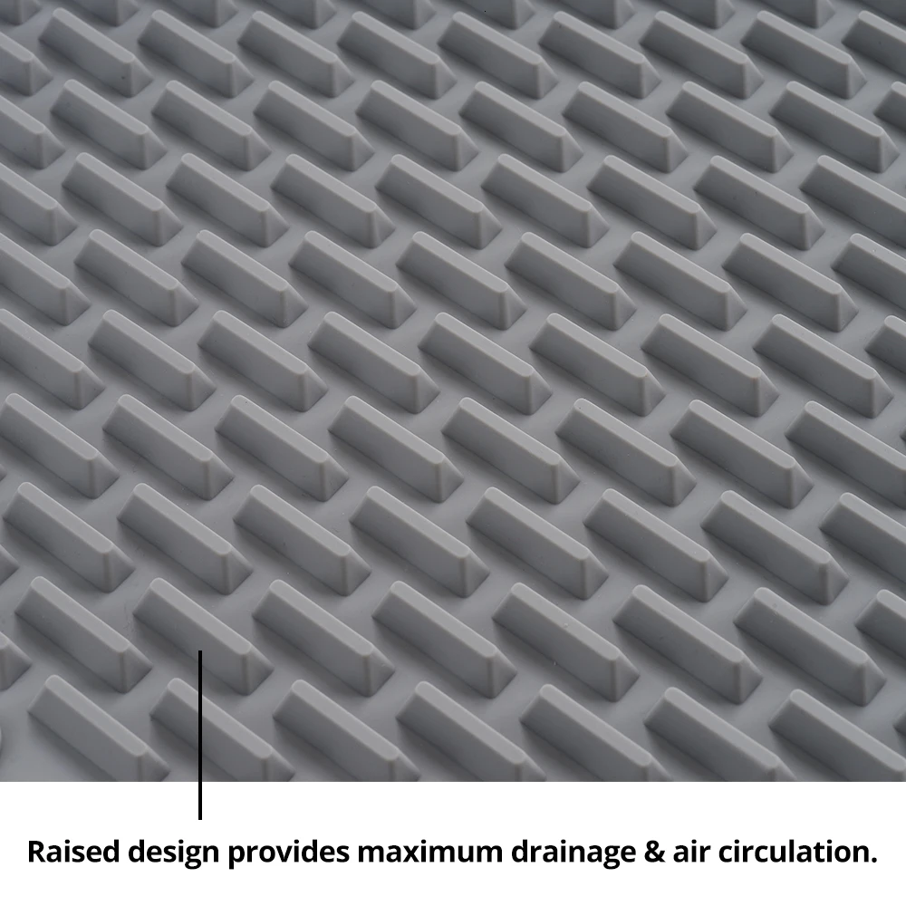 Рельефный дизайн коврика для сушки посуды обеспечивает быструю сушку