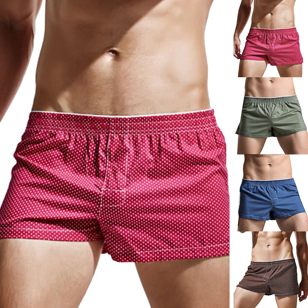 Мужские однотонные хлопковые трусы-боксеры в горошек с эластичным поясом, одежда для сна
