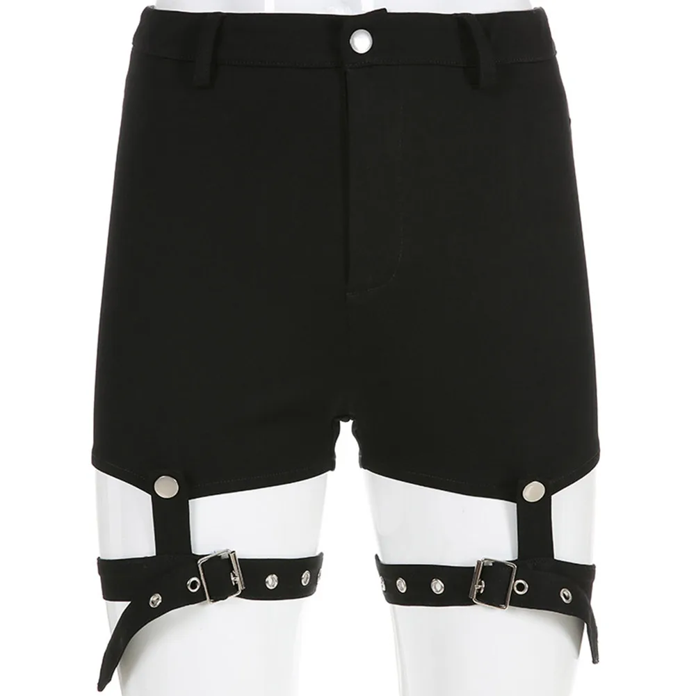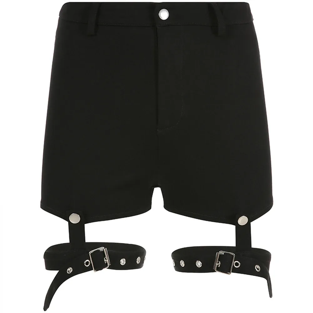 Летние женские шорты в стиле панк с лентами, повседневные короткие мини-шорты с высокой талией, однотонные черные сексуальные Клубные штаны с ягодицами