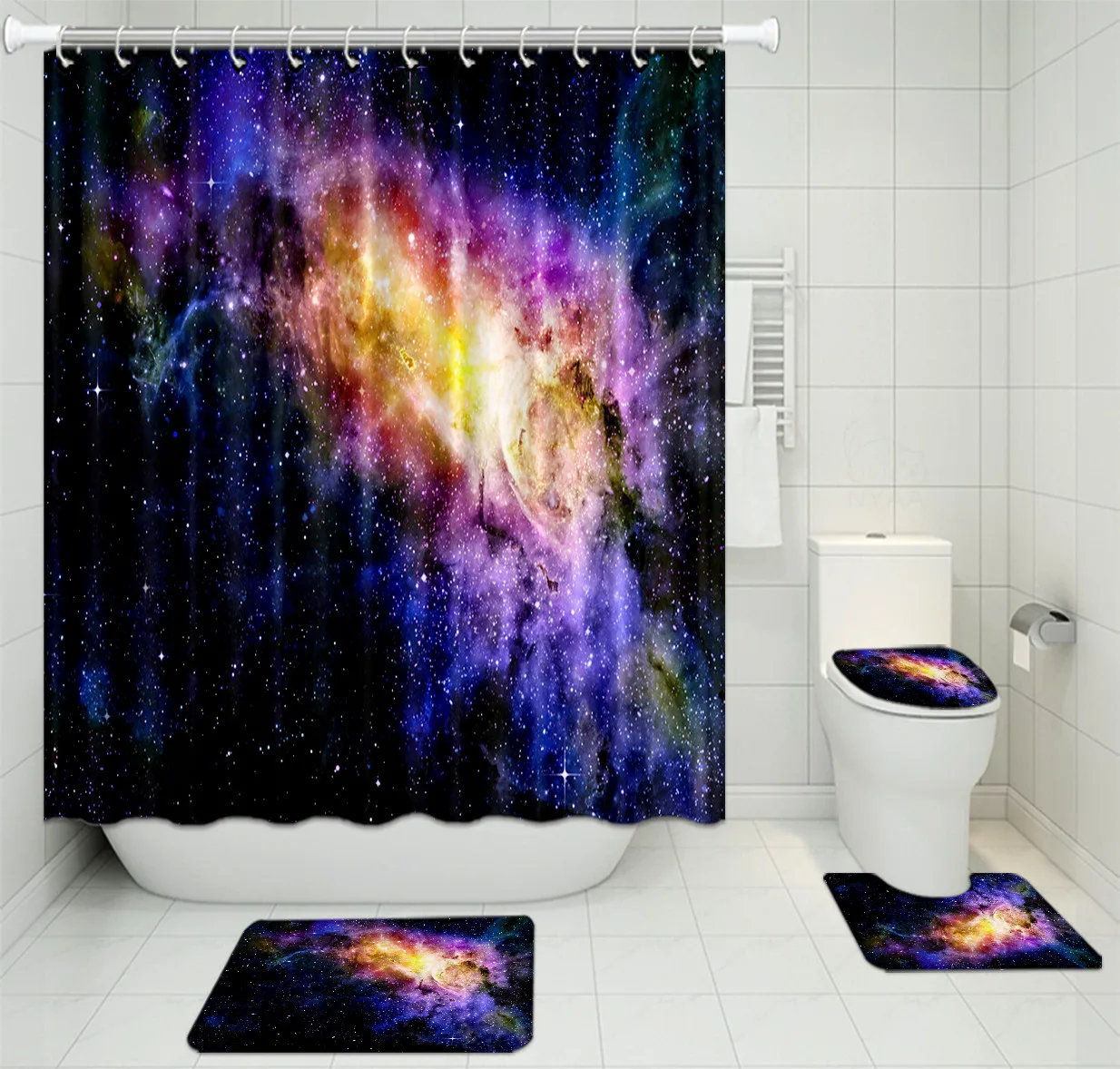 4 шт./компл. аксессуары для ванной комнаты (занавеска для душа, коврик на пьедестал, крышка для унитаза и коврик для ванной), отличное дополнение для вашей ванной комнаты. 100% абсолютно новый и хорошего качества. Этот комплект был абсолютно восхитительным и отлично выглядел в ванной. Особенности: 4 шт./компл. душевая занавеска для ванной комнаты, коврик на пьедестал, крышка для унитаза и коврик для ванной.