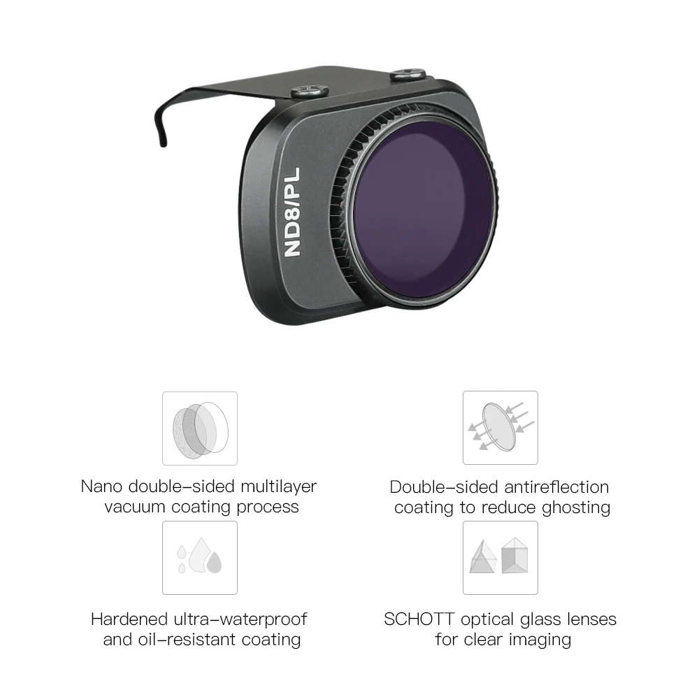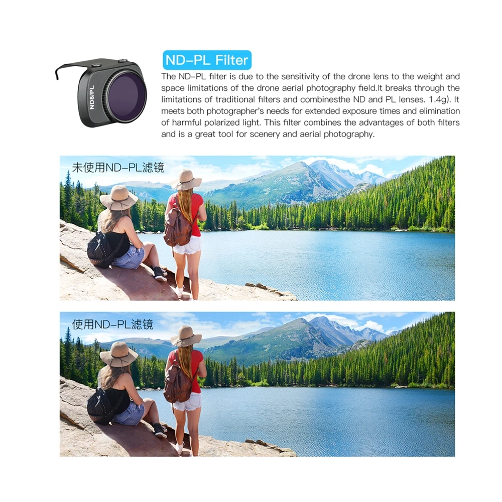 Особенности: Профессиональный фильтр объектива камеры дрона; Изготовлен из профессионального hd-оптического стекла, который может увеличивать светопередачу без темных углов, устойчив к царапинам, маслостойкий и водонепроницаемый, легко моется. Ультра легкий, достаточно для плавной работы карданного шарнира, избегайте перегрузки карданного шарнира, не влияет на время полета дрона. Эти фильтры отлично подходят для портретов и наружных сцен, идеально подходят для съемки и захвата профессиональных качественных изображений и видео. Точный тип оснастки, быстрая установка, легко отсоединяется. Спецификация: Название продукта: фильтр объектива Совместимость: объектив камеры DJI Mavic Mini drone Вес: 1,4 г/шт. Размер: 20x18x14 мм Материал: алюминиевый сплав (рамка) + Оптическое стекло (объектив) Количество: один/комплект (опционально) Режим установки: Тип оснастки, быстрая установка и удаление CPL фильтр: (круговой поляризатор фильтр) Удаляет нежелательные отражения от неметаллических поверхностей, таких как вода или стекло и блики от солнца. Увеличивает насыщенность цвета, улучшает четкость и выразительность изображения. Помогает уменьшить количество света, входящего в объектив. Особенно полезно при светоотражающем или рассеянном освещении. ND фильтр: (фильтр нейтральной плотности) Основная функция заключается в уменьшении количества входящего света, когда свет слишком яркий, так что камера может выбрать правильное значение экспозиции и избежать чрезмерного воздействия. Отлично подходит для портретов и наружных сцен под солнечным светом, не влияя на цвет. Использование фильтра ND также может воспользоваться более медленными скоростями затвора, чтобы снимать специальные эффекты, такие как туманная вода, ночные световые дорожки и многое другое. Обеспечивает более широкие отверстия, эффективно уменьшая глубину поля. Посылка включает в себя: 1 x фильтр объектива для DJI Mavic Mini drone (опционально) Примечания: Только фильтр объектива, мини-Дрон Mavic не входит в комплект. Возможны незначительные отклонения из-за ручного измерения. Отклонение цвета может отличаться из-за различных настроек монитора, пожалуйста, поймите.