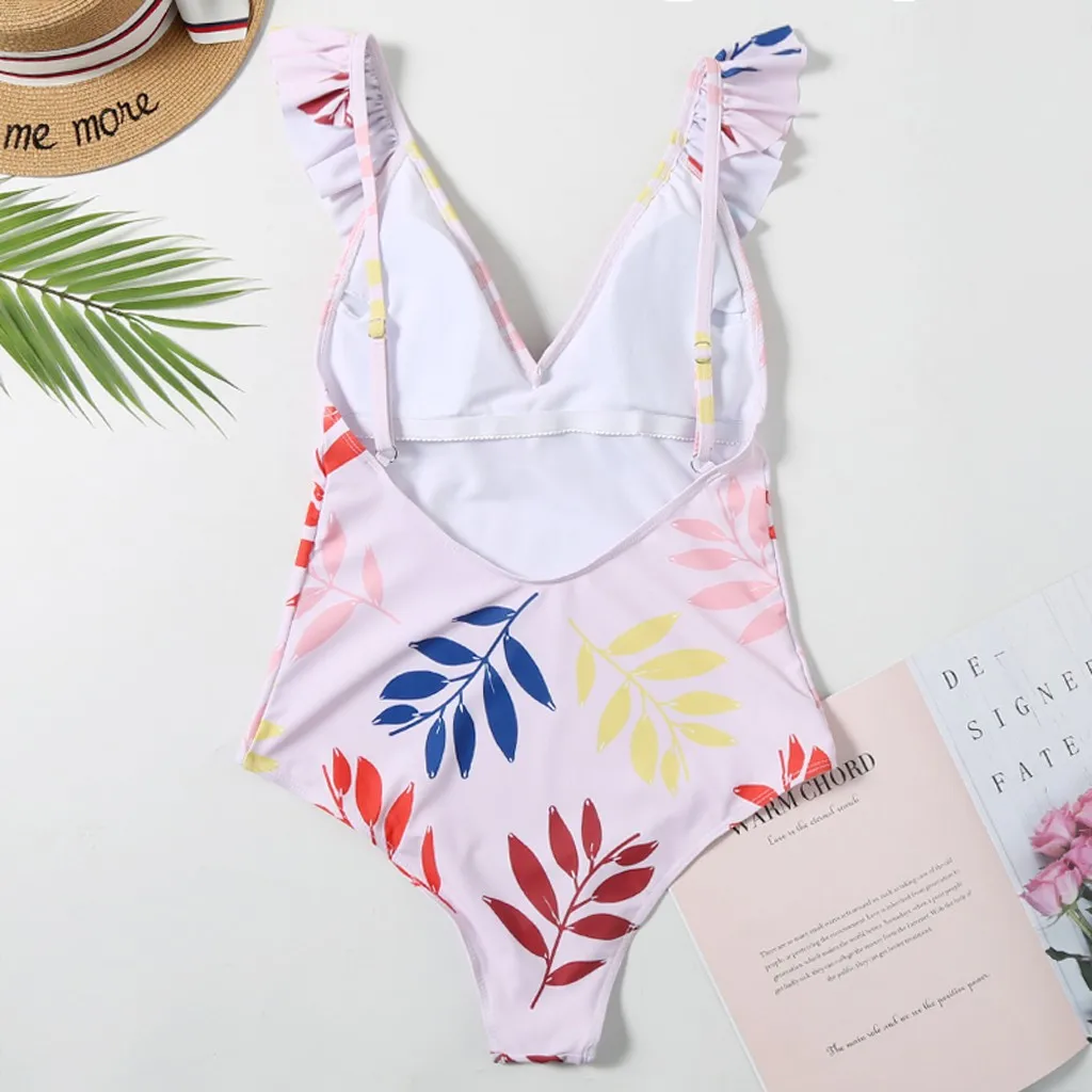 Женский сексуальный цельный купальник бикини с глубоким v-образным вырезом и оборками