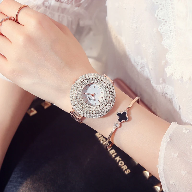 Женские часы люксовый бренд модные большие Стразы циферблат розовое золото стальной ремешок женские часы кварцевые часы relogio feminino