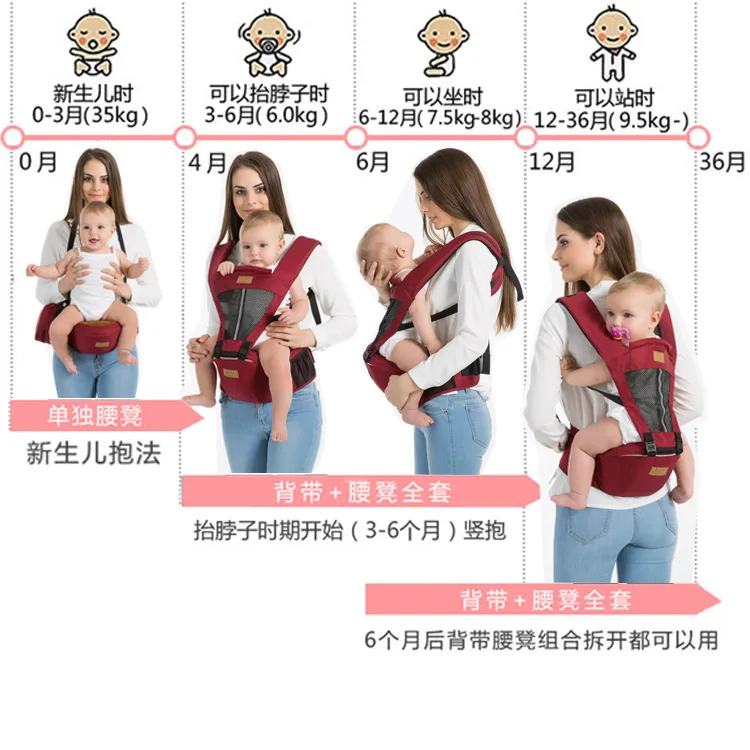 Функция: 1. 3 модель использования: одна модель перевозчика, одна модель сиденья Бедра, Комбинированная Модель 2. Подходит для 0-48 месяцев. 3. 15 видов переноски для 0-48 месяцев 4. С большой емкостью хранения 5. С длинной задней панелью может защитить ребенка от ветра и солнца 6. Длинная задняя панель также может защитить позвоночник ребенка 7. Научный дизайн подушки для предотвращения детских o-ножек 8. Подходит для лета и 4 сезона 9. Красивый цвет для маленьких мальчиков и девочек Вес груди: 25 кг