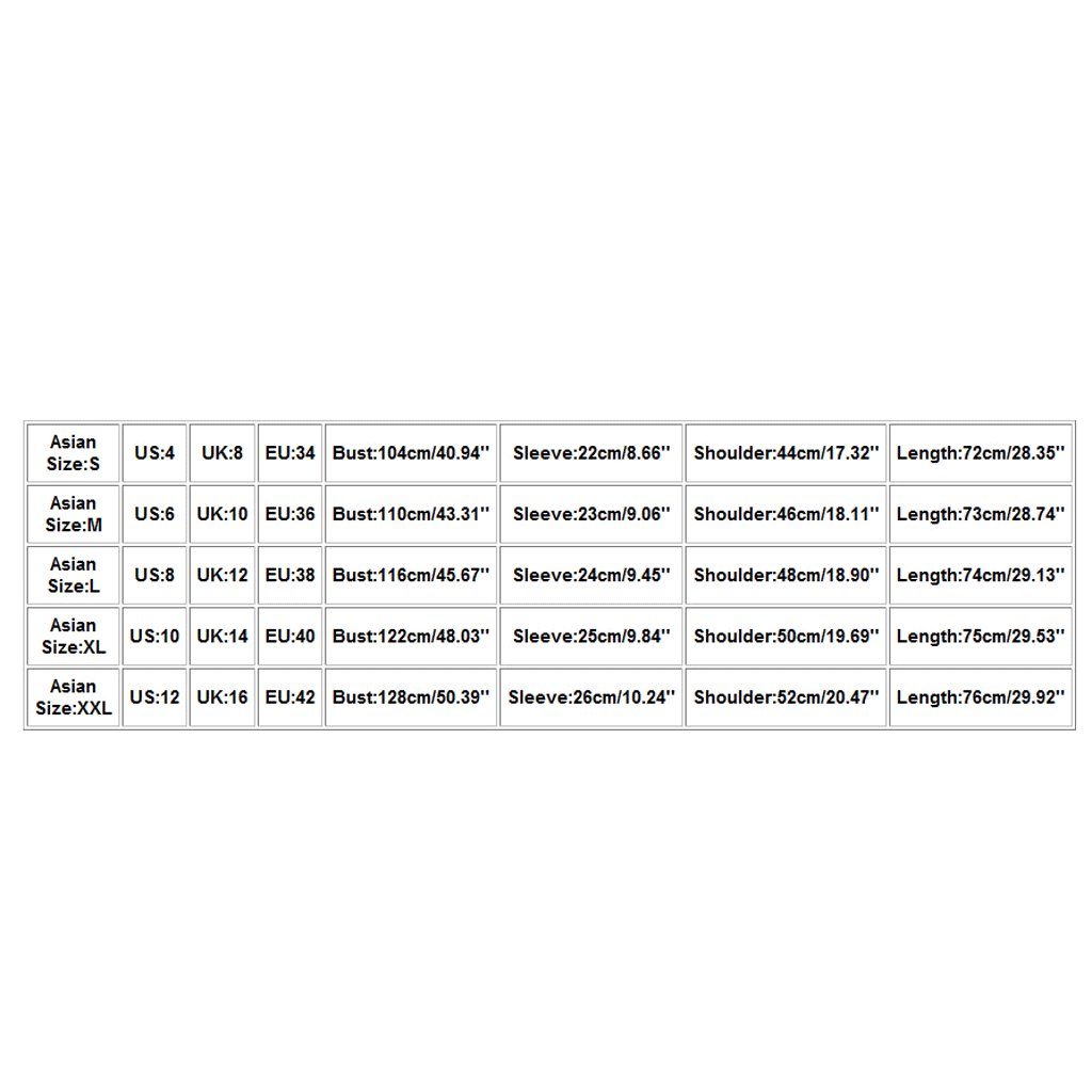 Азиатский Размеры Свяжитесь с нами Великобритания ЕС Обхват груди Рукава Сумка на плечо Длина S 4 8 34 104 см/40,94'' 22 см/8,66'' 44 см/17,32'' 72 см/28,35'' М 6 10 36 110 см/43,31'' 23 см/9,06'' 46 см/18,11'' 73 см/28,74'' L 8 12 38 116 см/45,67'' 24 см/9,45'' 48 см/18,90'' 74 см/29,13'' XL 10 14 40 122 см/48,03'' 25 см/9,84'' 50 см/19,69'' 75 см/29,53'' XXL 12 16 42 128 см/50,39'' 26 см/10,24'' 52 см/20,47'' 76 см/29,92''