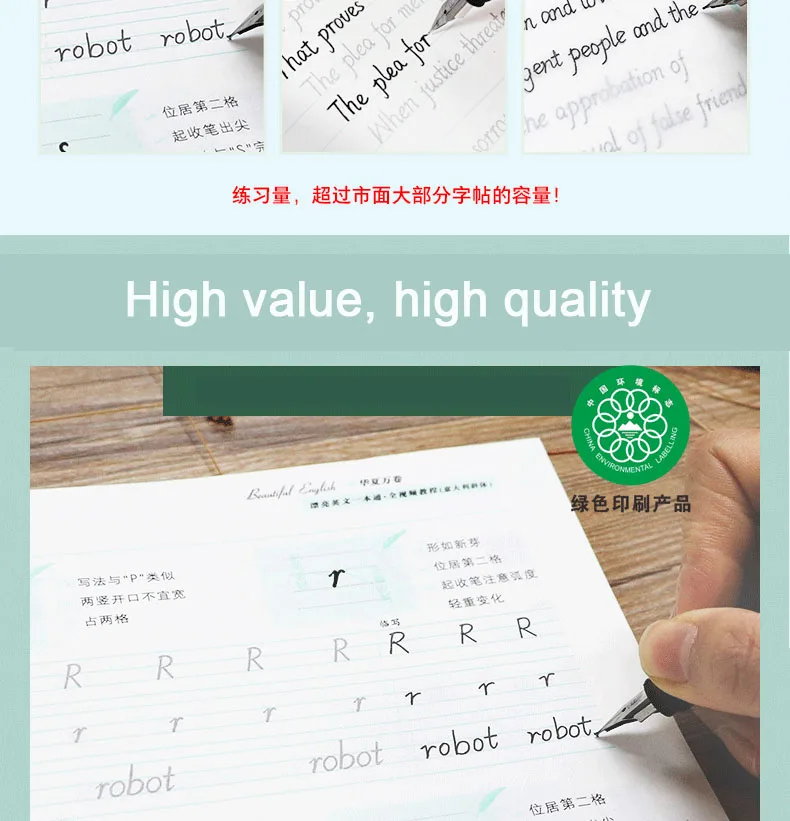English Handwritten Copybook Print Hengshui Italian italic Round Body Middle School Students Adult English Calligraphy Copybook