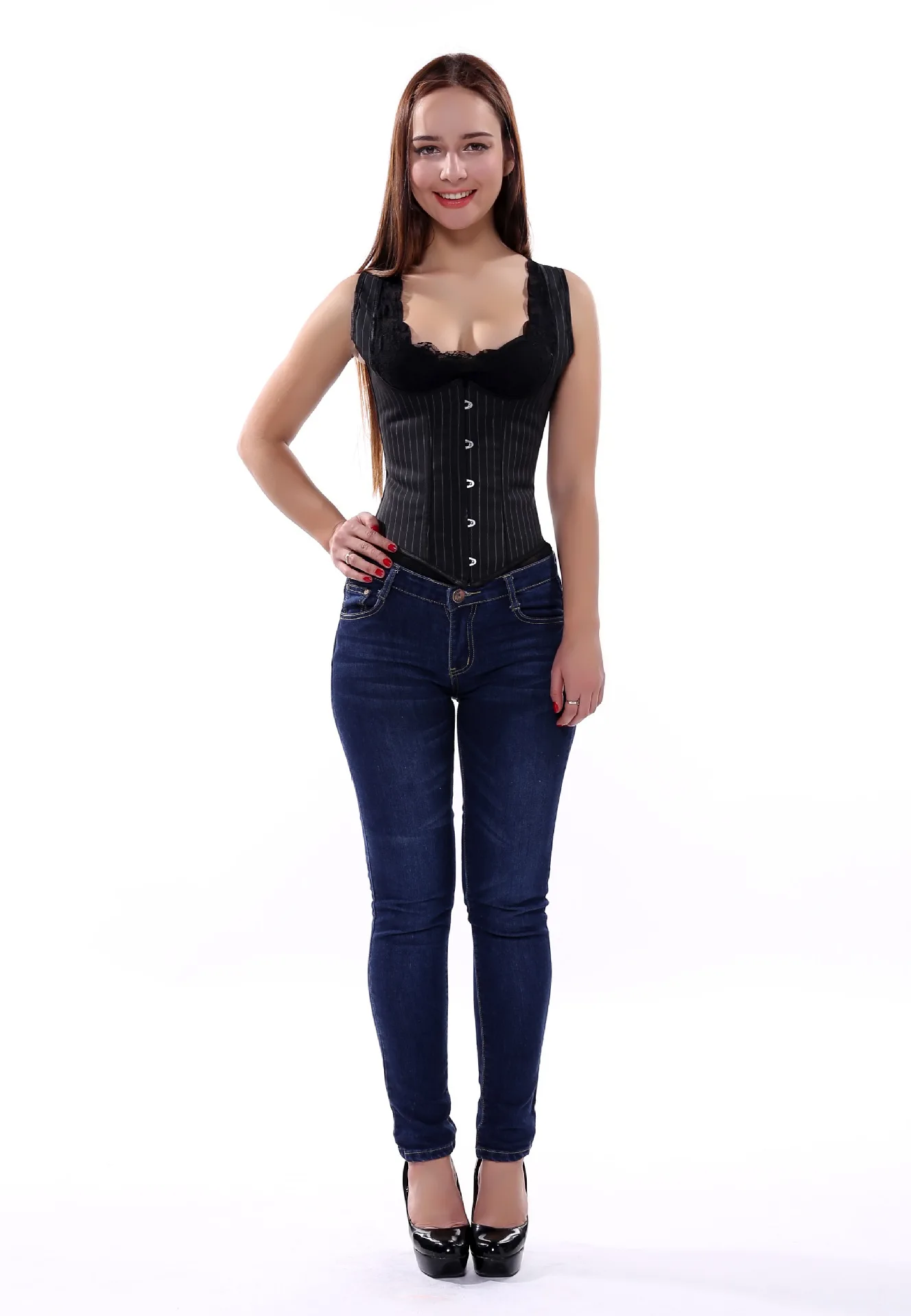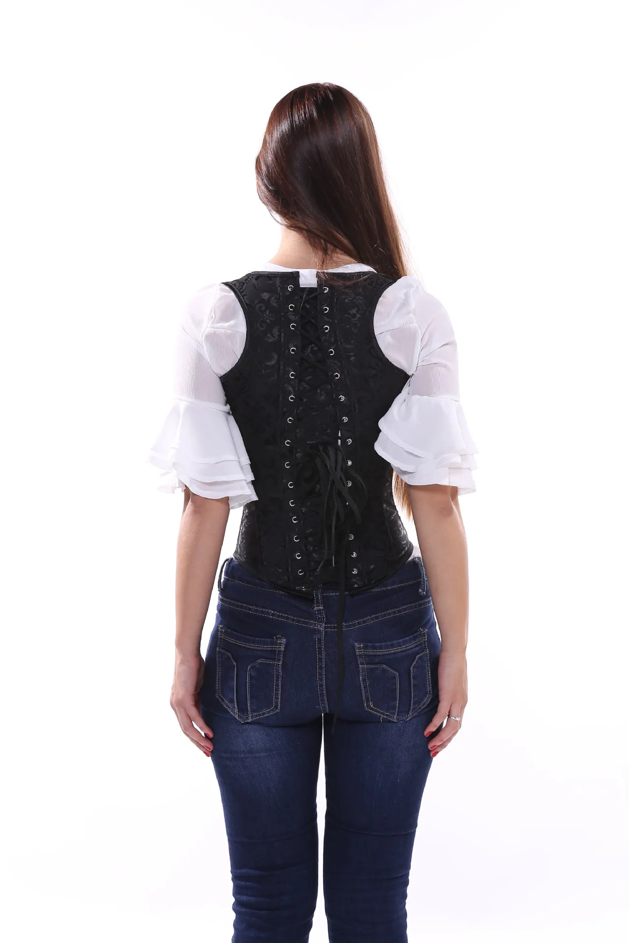 Черный корсет под грудь в стиле стимпанк, готические корсеты с изогнутым подолом, сексуальные бюстье, вышивка, Короткая Талия, тренажер