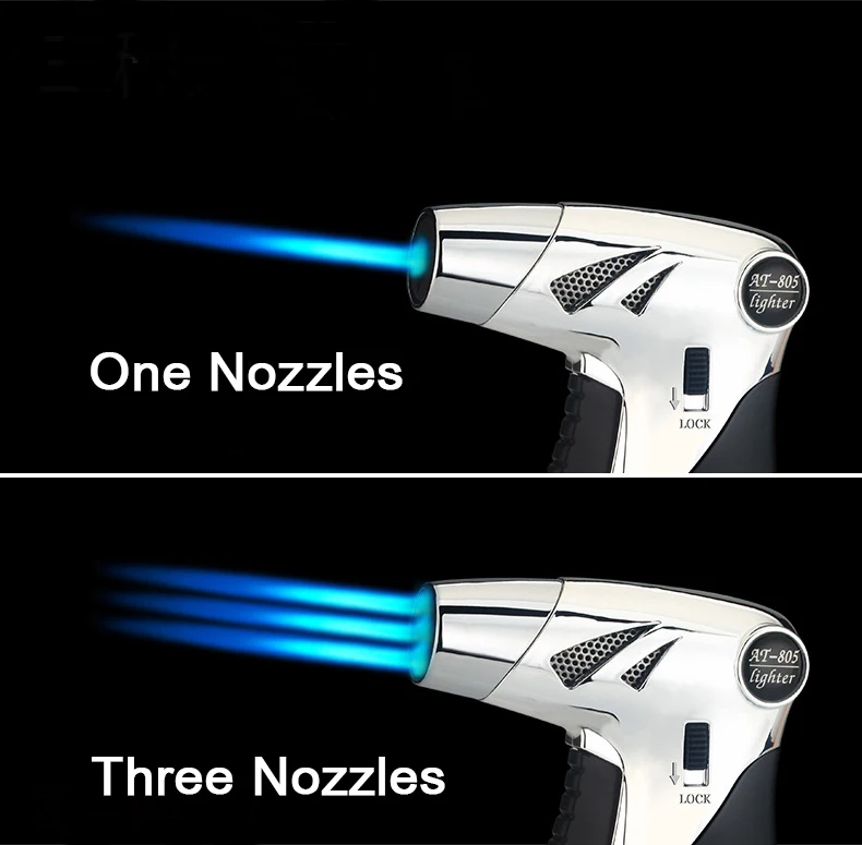 Пекарская Зажигалка для барбекю на открытом воздухе, кухонный фонарь, турбо-трубка, газовые зажигалки, Бутановая сигарета, распылитель, сигарета, ветрозащитная, 3 насадки для огня