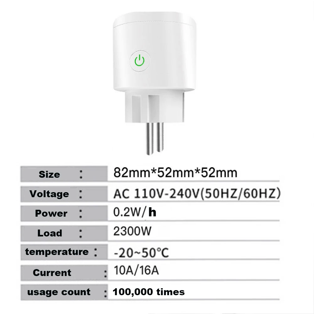 100% Новинка и высокое качество Дистанционное включение/выключение-включение/выключение электрических устройств из любого места Поддержка приложений-Бесплатное мобильное приложение для iOS и Android smart life Статус синхронизации-Статус устройства в реальном времени предоставляется в приложении Синхронизация-установка таймеров по расписанию/обратному отсчету/циклу для включения/выключения в указанное время Поделитесь контролем-Управляйте своим умным домом вместе с семьей Сцена-включение/выключение банды устройств одним нажатием Умная сцена-включение/выключение при температуре, влажности или других условиях окружающей среды Голосовое управление-отлично работает с Amazon Alexa/для Google Assistant Портативный и прочный, легко носить с собой, легкий Входное напряжение: 100-240 В Выходной ток: 10А/16А Мощность в режиме ожидания: 2300 Вт Обычная нагрузка: 600 Вт Корпус: абс + ПК огнеупорный материал Технические характеристики: штепсельная вилка европейского стандарта Сертификация: FCC/ROSH (ETL делает) Рабочая влажность: <80% Рабочая температура: -20 °C-50 °C Расстояние Wi-Fi: 50 метров на открытом воздухе, в помещении до 30 метров (в зависимости от строительных материалов и структуры) Тип Wi-Fi: 2,4 ГГц 802.11b/g/n Уровень безопасности сети: WPA/WPA Цвет: белый