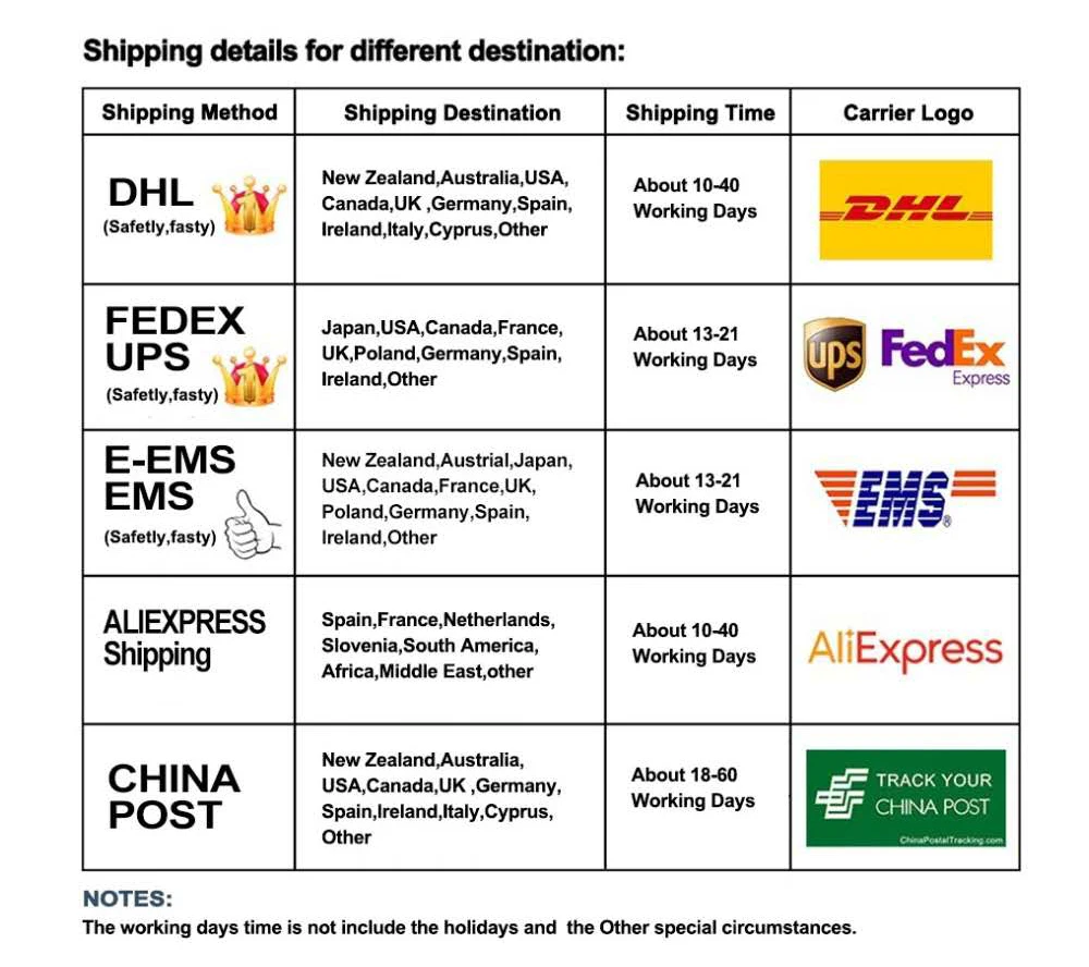 A:Мы обычно отправляем товар в соответствии с курьером, выбранным клиентом. Однако в некоторых отдаленных районах покупатель выбирает, что логистика не может быть доставлена, или логистическая компания не может транспортировать обычно по некоторым причинам, или есть другие более быстрые экспресс-доставки, но покупателю не нужно платить больше денег и т. Д. Мы отправим сообщение, чтобы сообщить покупателю, попросить покупателей о своем мнении,Пожалуйста, не забудьте проверить Aliexpress сообщение ".