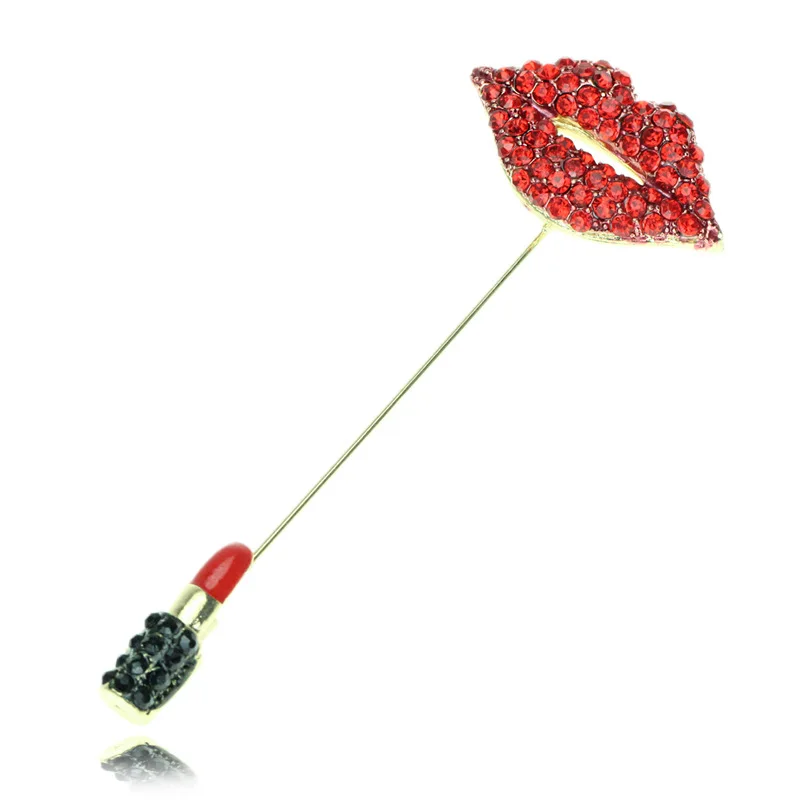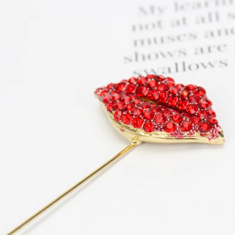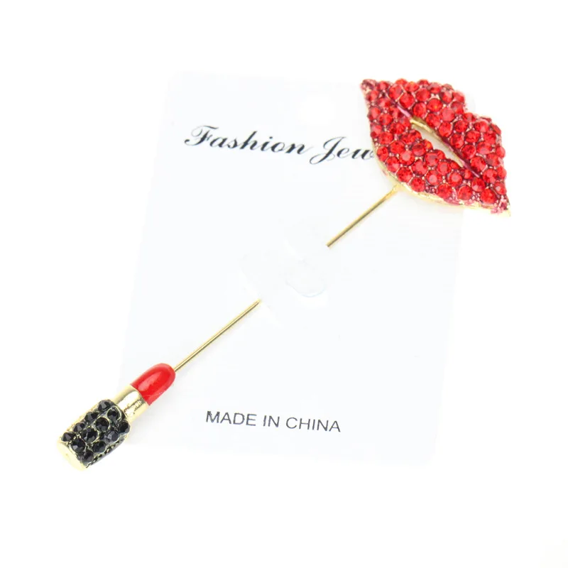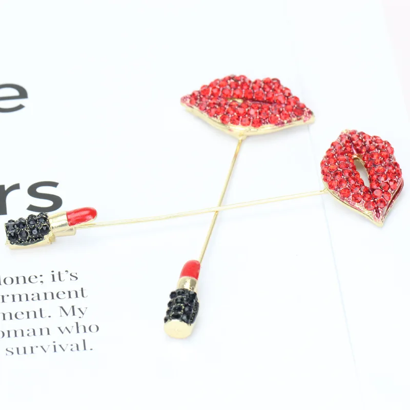 Новинка, стразы, красное слово, сексуальные губы, Женская Брошь, длинная булавка, брошь для помады, дизайн, летнее платье, аксессуары, модные ювелирные изделия, брошь