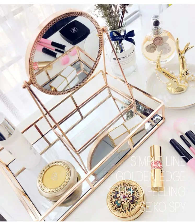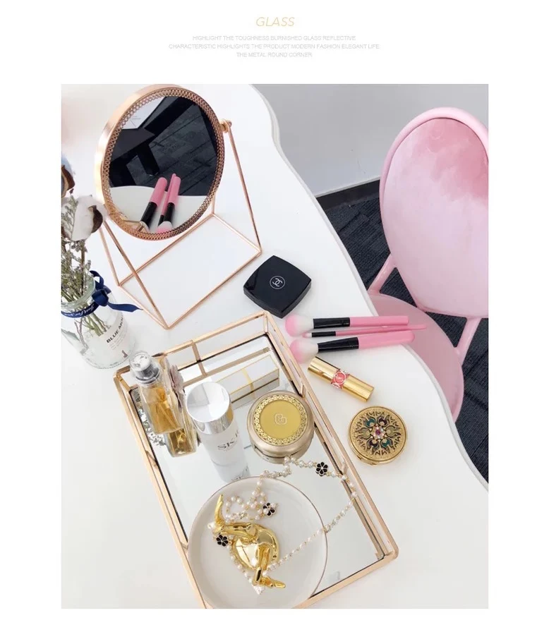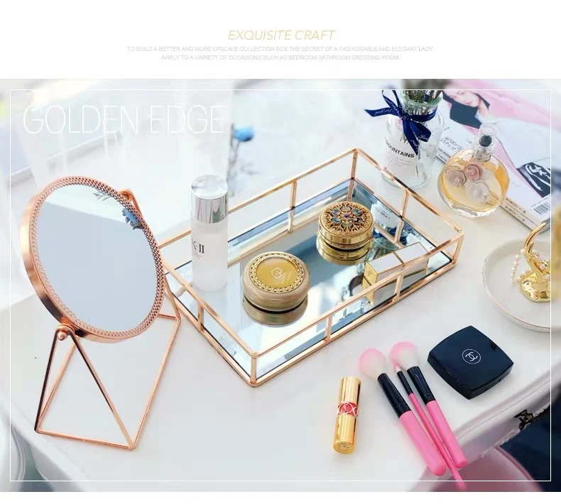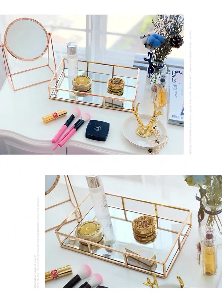 Корзины для хранения макияжа, Винтажный Золотой многоугольник, органайзер, латунный тон, металлическое декоративное зеркало, аксессуары для домашнего декора
