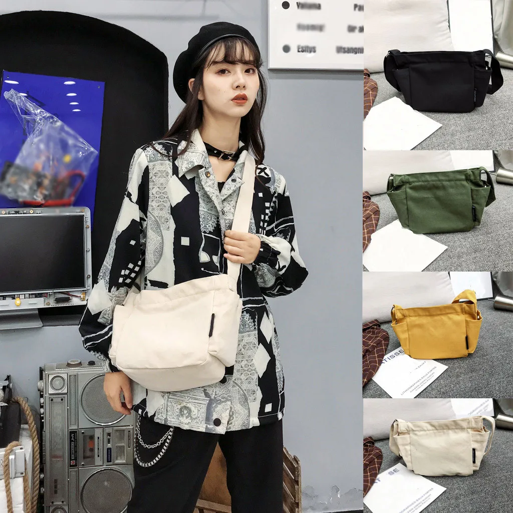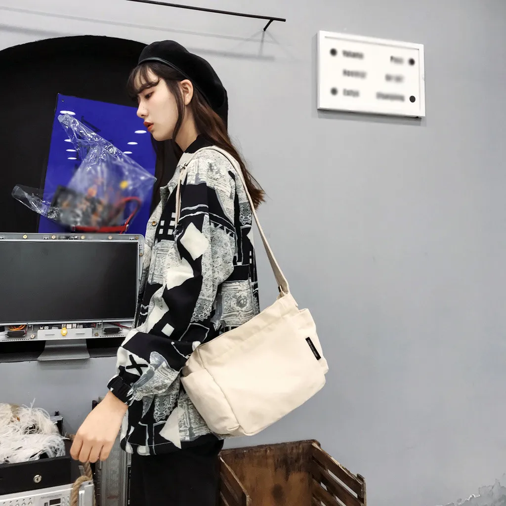 Женская и мужская сумка-мессенджер, Студенческая сумка на плечо, Женская холщовая универсальная Простая Повседневная Большая вместительная модная сумка Wild H1