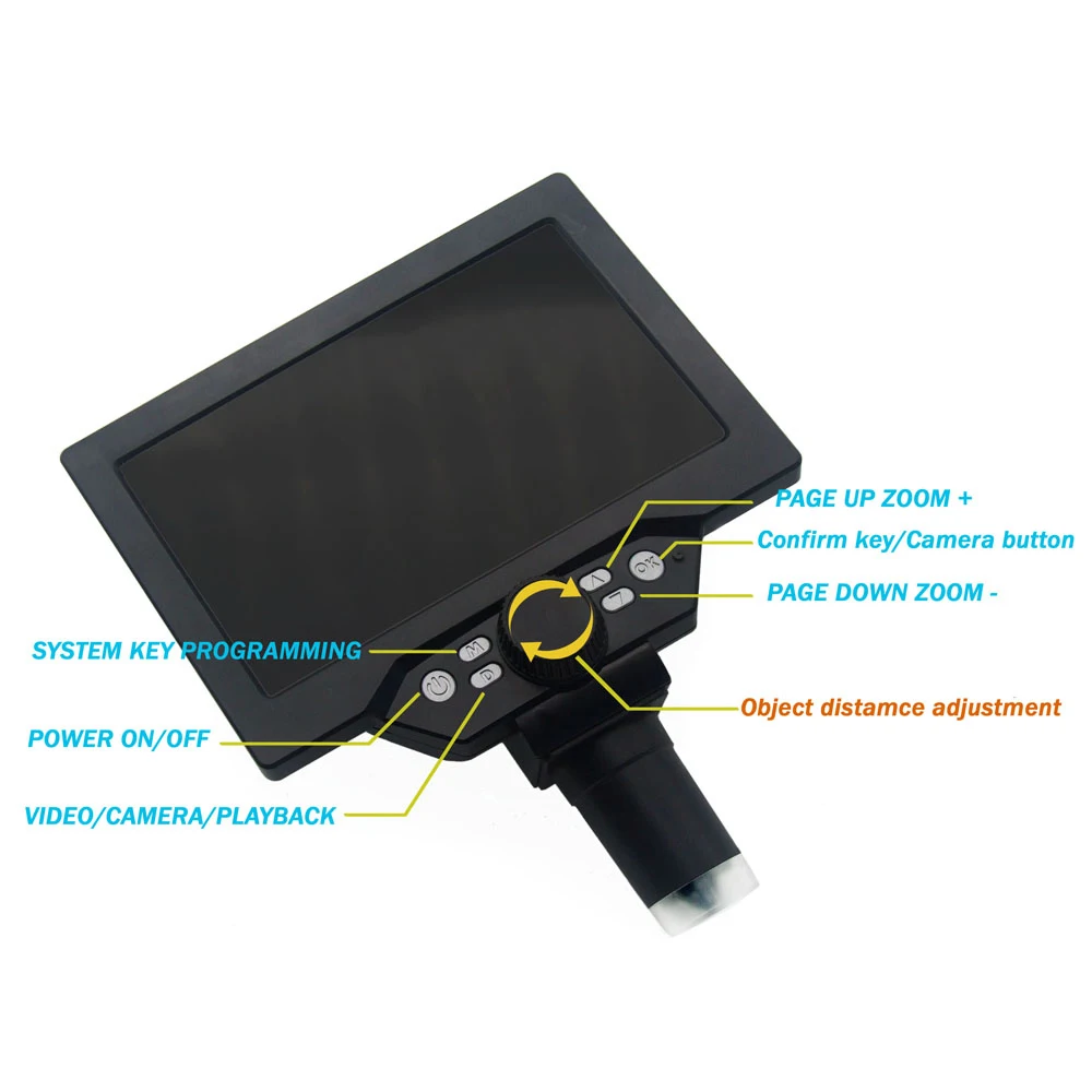 7-дюймовый HD ЖК-дисплей экран G1200 микроскоп, кронштейн может быть поворачивается под любым углом наклона вперед и назад, чтобы удовлетворить ваши потребности, в то время как объектив поддерживает 1-1200X с непрерывным масштабированием. Это определенно может быть прекрасным помощником для вашей повседневной работы.