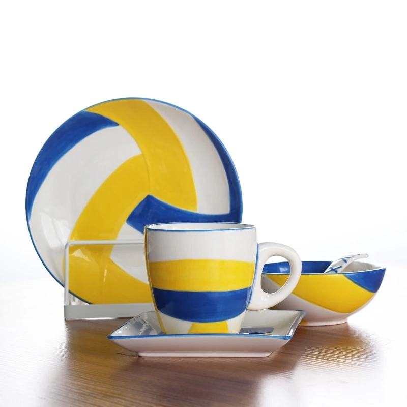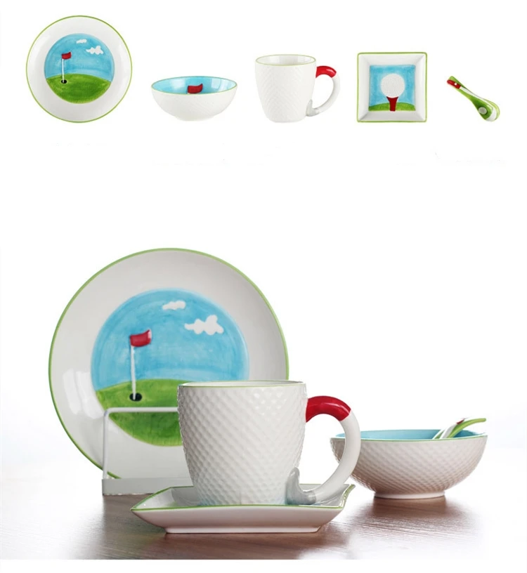 В комплект входят 5 штук, тарелка, миска, поднос, ложка и чашка. Все они изготовлены из керамики, поверхность окрашена вручную с рельефом, что очень красиво и особенно. Может использоваться в микроволновой печи, посудомоечной машине или стерилизаторе. Из-за ручного окрашивания каждый продукт не будет точно таким же, и могут быть небольшие изъяны, но это не влияет на общий внешний вид и использование.