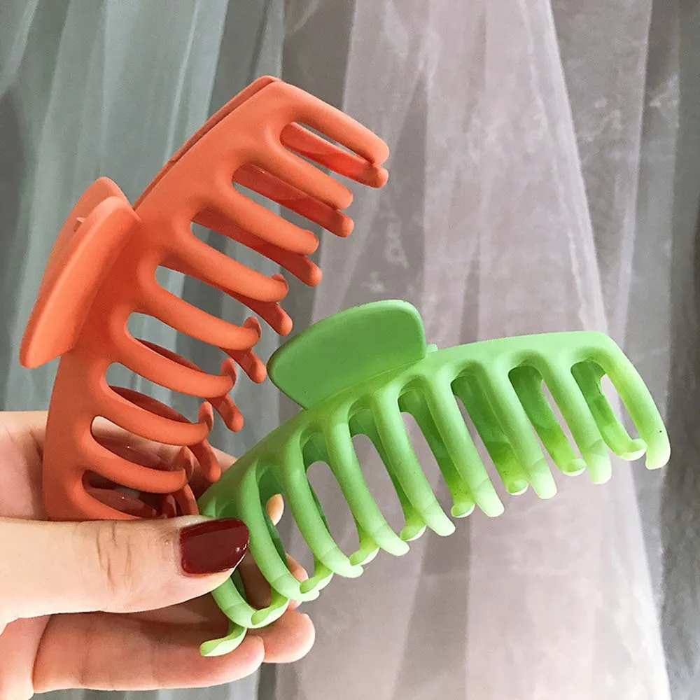 Материал: пластик/смола Цвет: черный, оранжевый, розовый, темно-синий, зеленый, розовый, хаки Размер: 9*4,7 см Вес: 22 г Подходит для: женщин Упаковка: 1 шт. коготь для волос