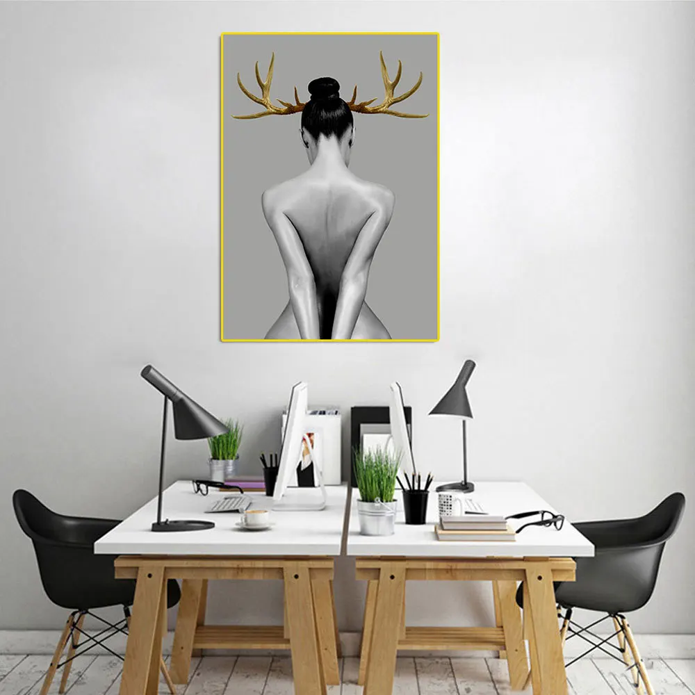 NordicPoster принт скандинавские стены картина стиль Искусство Холст Картина Реалистичная девушка листья растение для гостиной современный декор