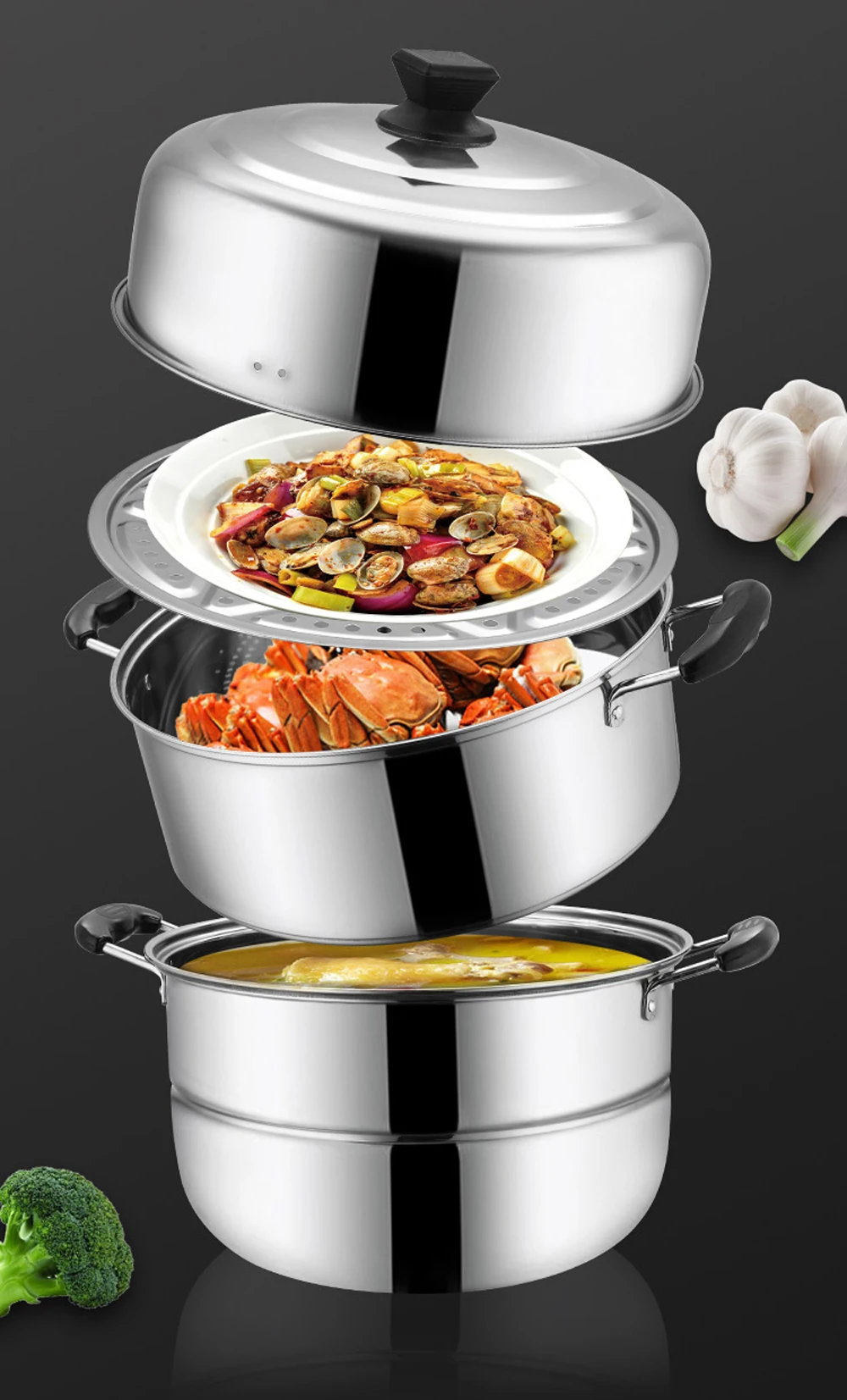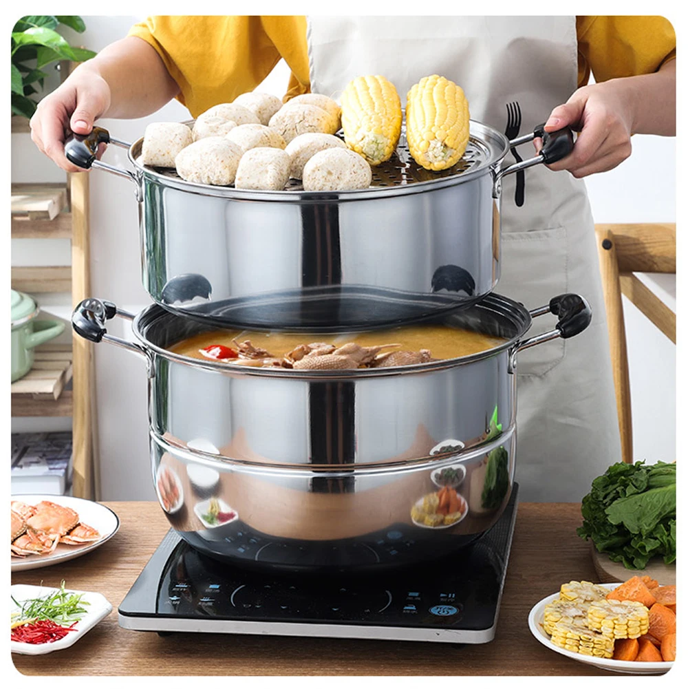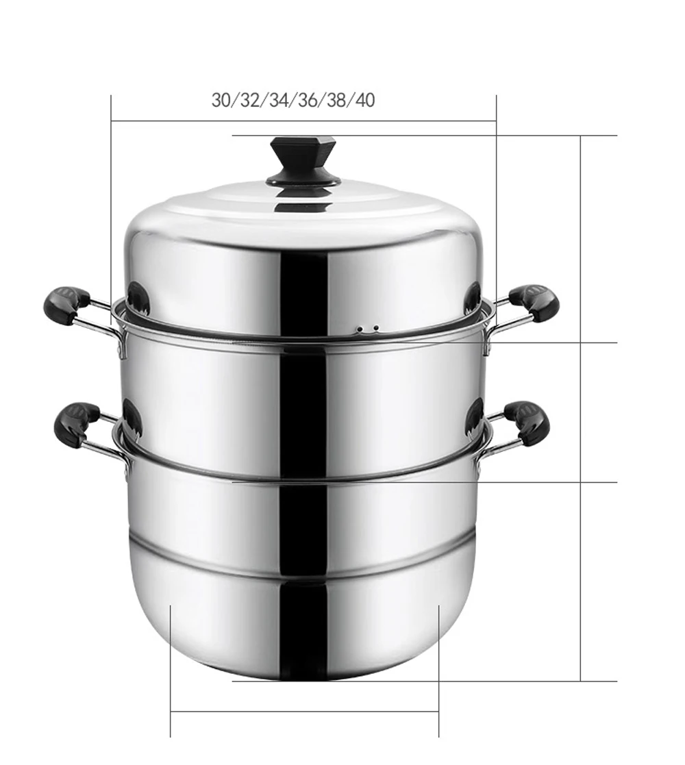 Отпариватель из нержавеющей стали, бытовой двухслойный, утолщенный, 36, 38, 40 см, очень большой, коммерческий, очень большой, суп, кастрюля на пару