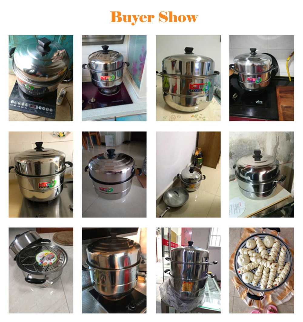 Материал: нержавеющая сталь 430 Страна происхождения: Китай (материк) Размеры: 30 см/32 см/34 см/36 см/40 см Тип подошвы: однодонный Посылка: 1 нержавеющая сталь Пароварка
